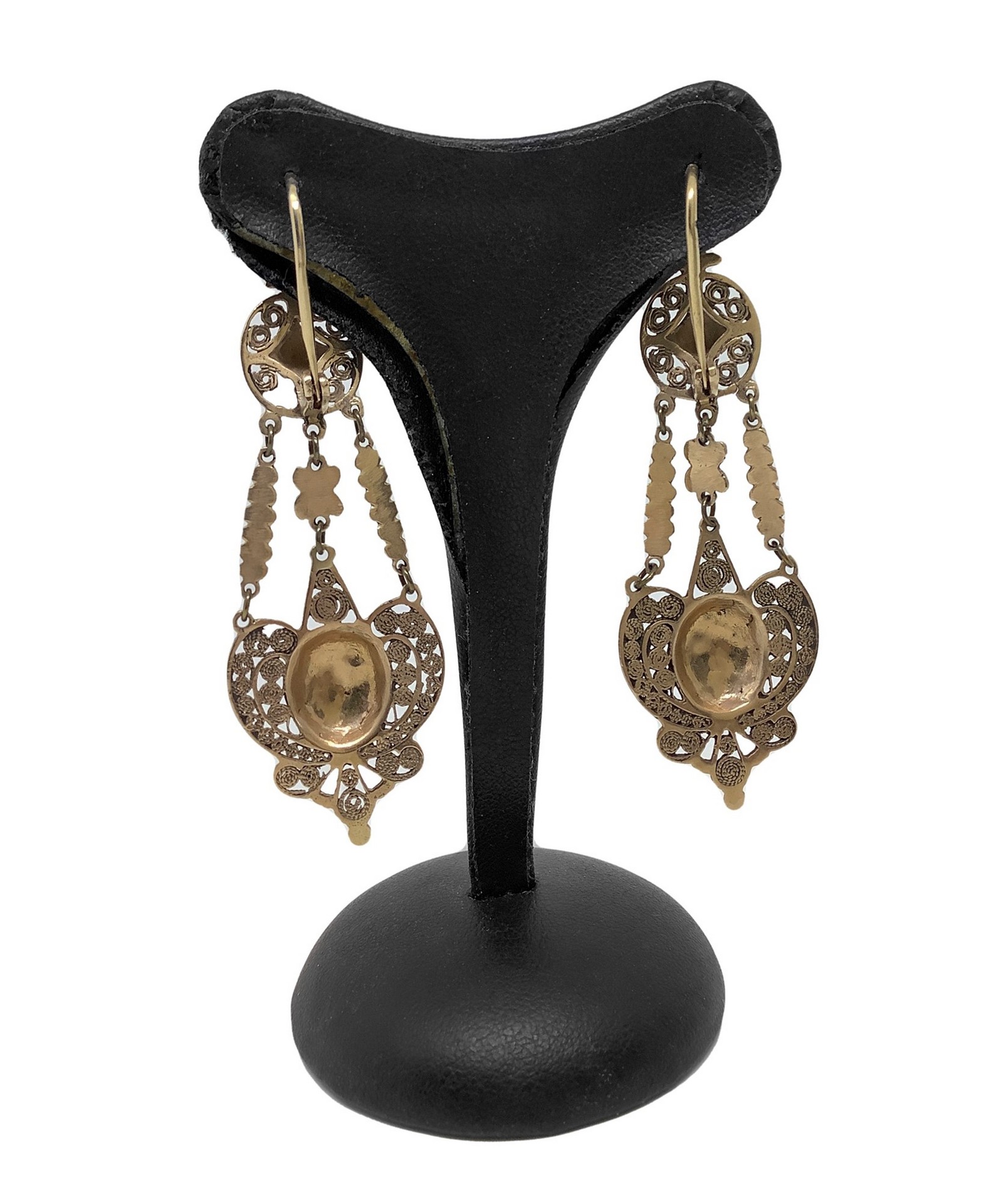 Importanti orecchini pendenti in oro l 7 cm, 12,6 gr. Vecchia manifattura.Vecchia manifattura.