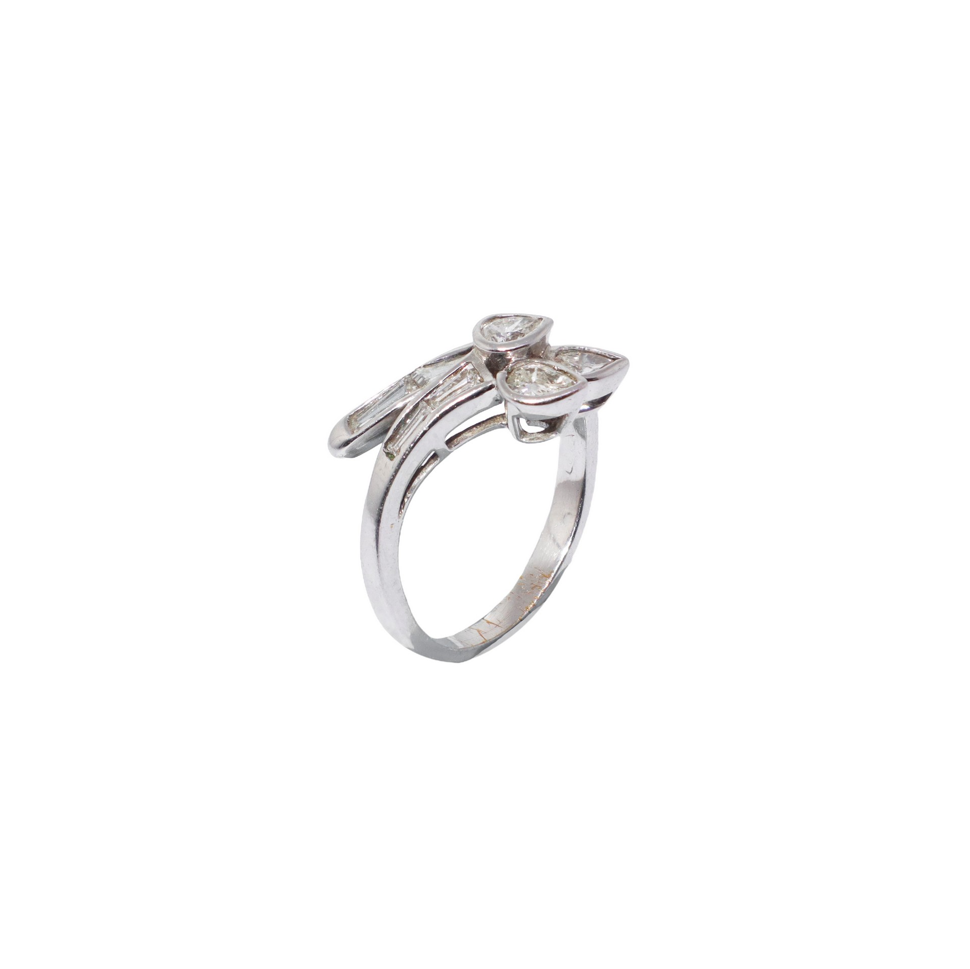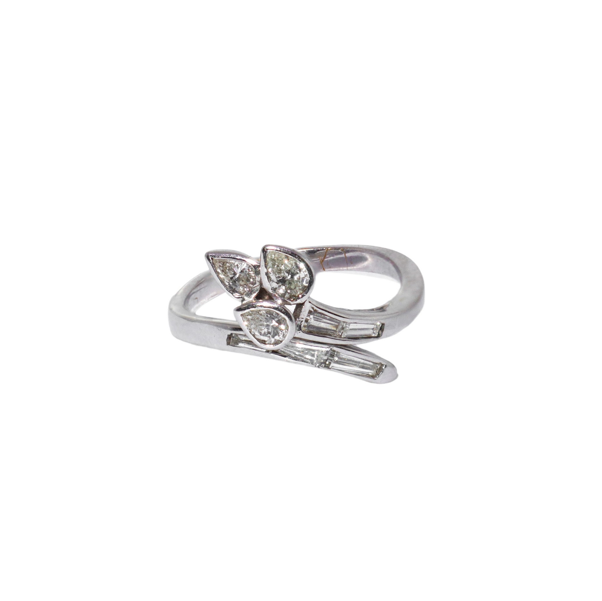 Lot 300 | B & F - Anello in oro bianco con brillanti a gocce e baguettes