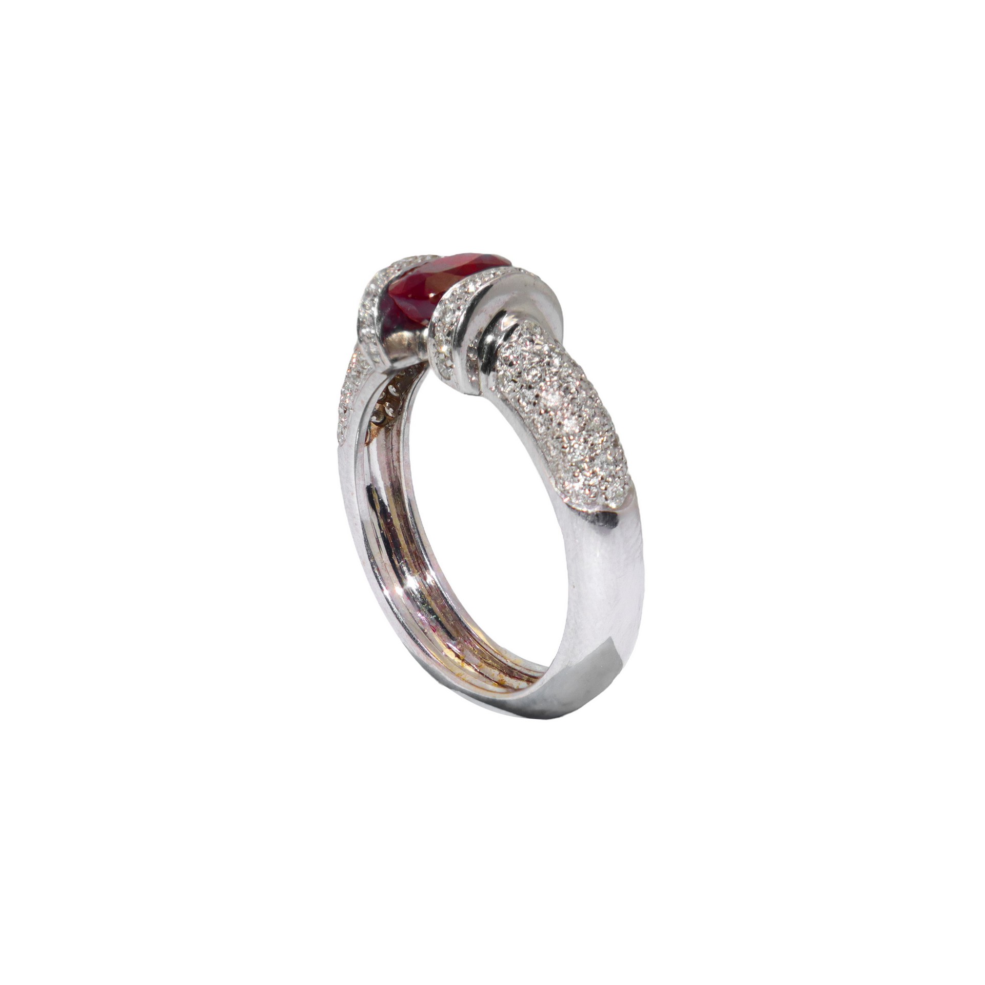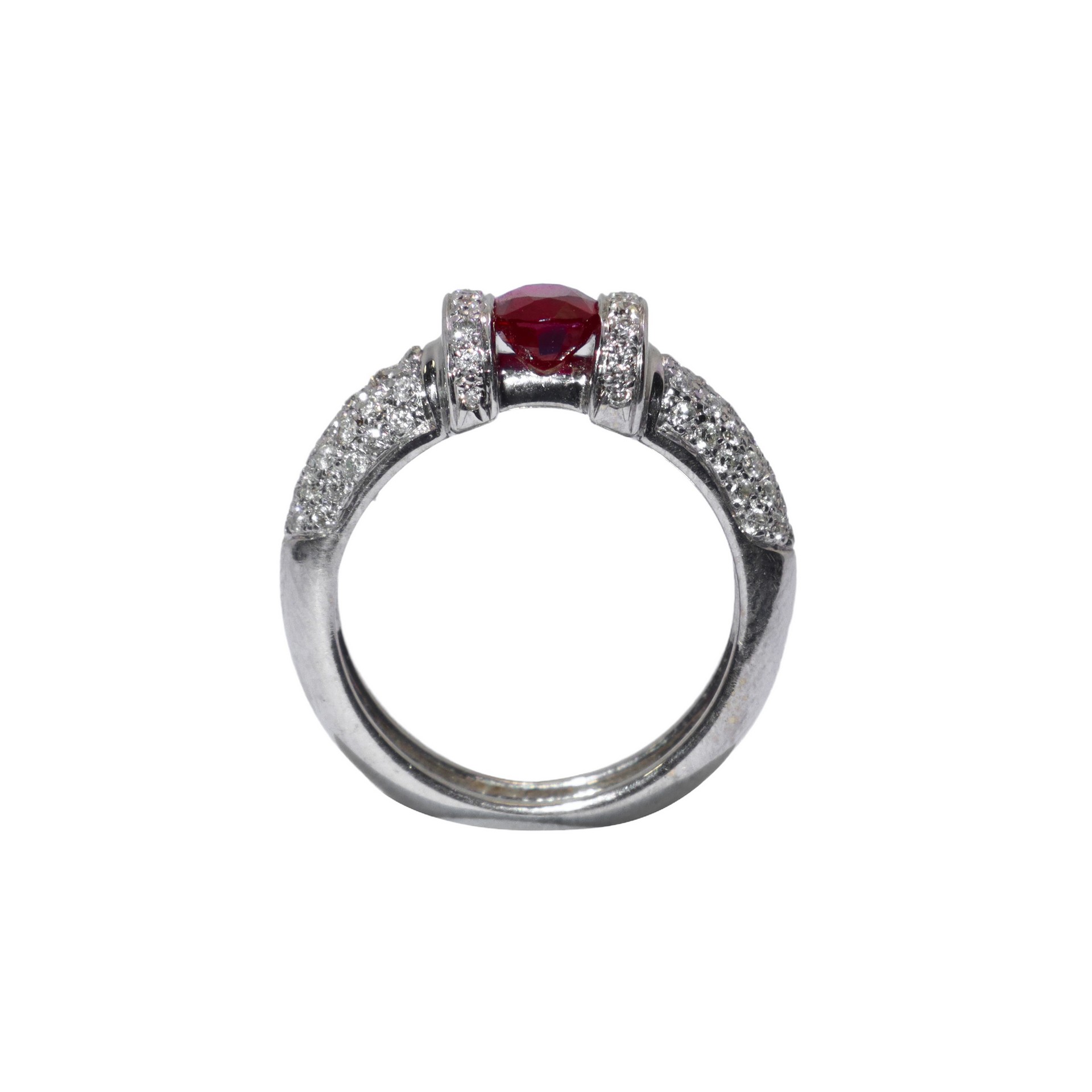 Anello in oro bianco con Rubino Rubino centrale, 1 Kt, 0,60 ca di brillanti