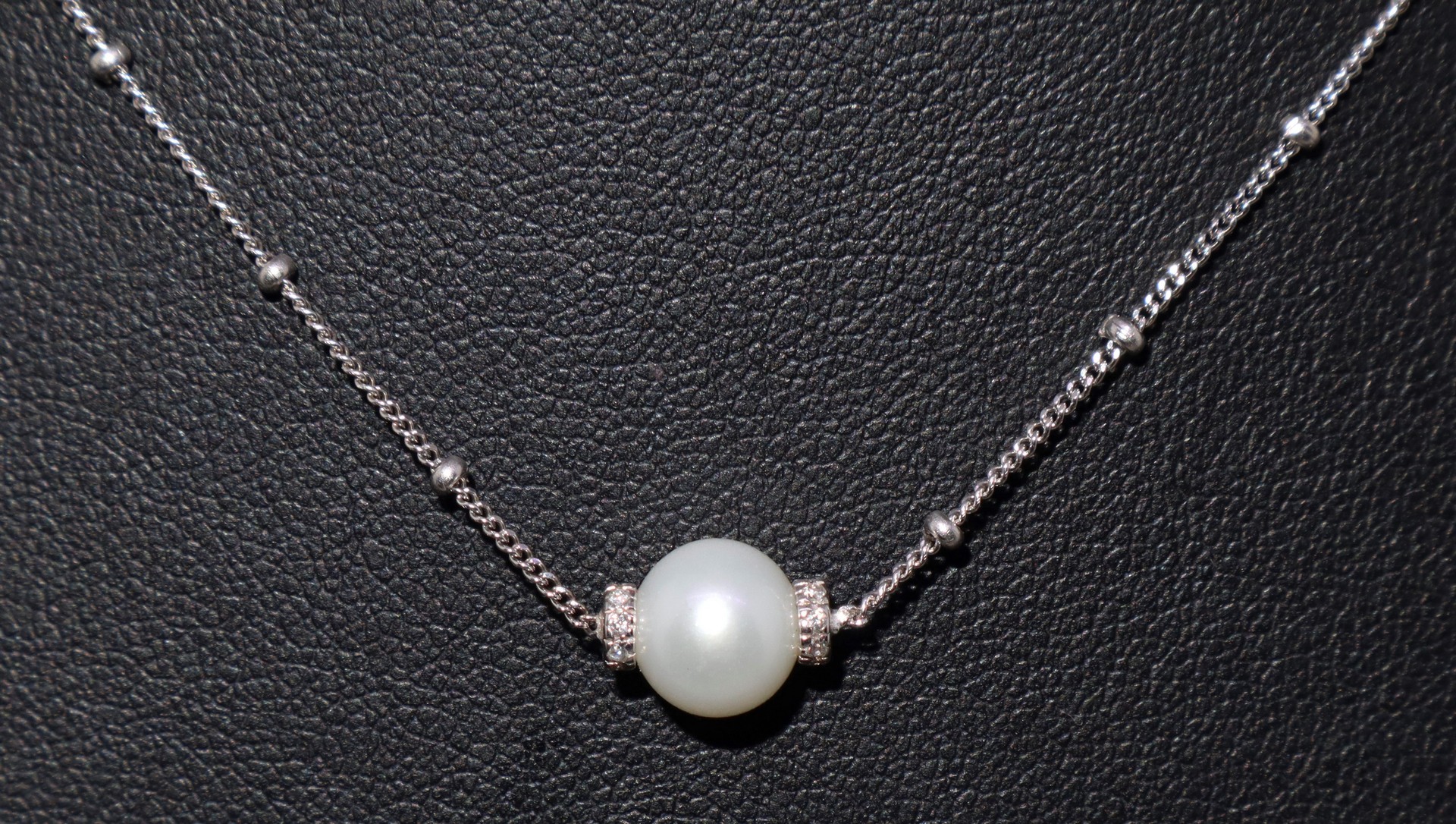 Comete - Collana in oro bianco con centrale in perle e diamanti taglio brillante