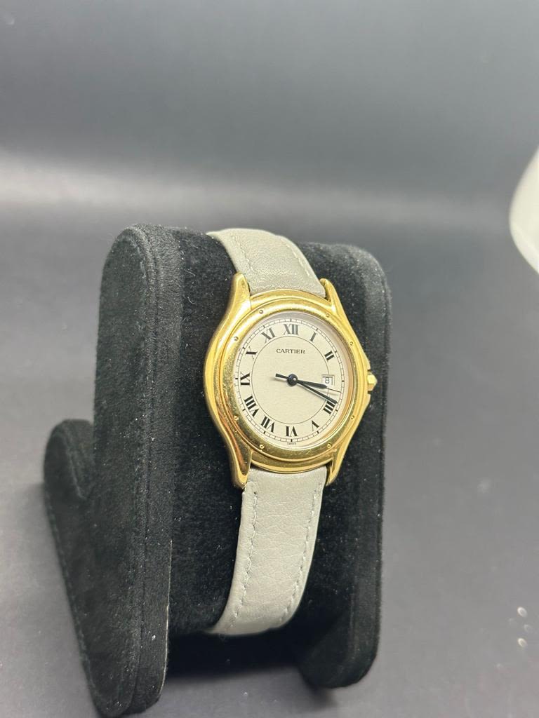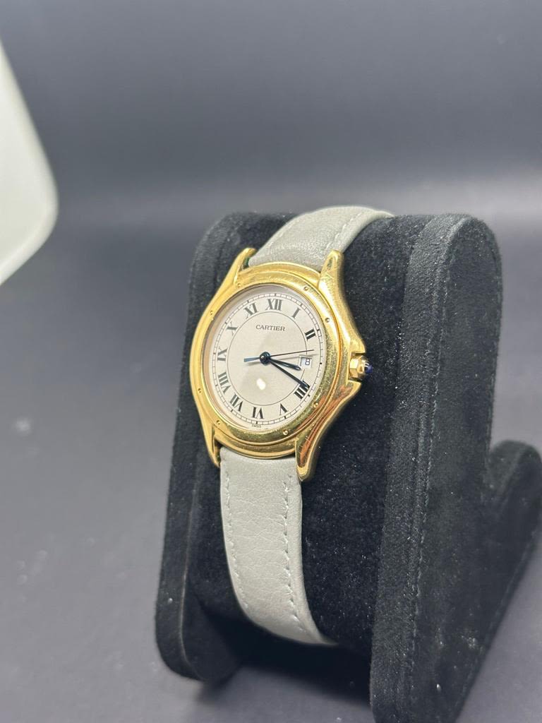 Marca Cartier Modello (Orologio) Cougar Numero di referenza 887904 Carica Quarzo Materiale della cassa Oro giallo Materiale cinturino Oro giallo Corredo NO SCATOLA NO GARANZIA Calibro Carica Quarzo Cassa Materiale della cassa Oro giallo Diametro 33 mm Impermeabile 3 ATM Materiale lunetta Oro giallo Vetro Vetro zaffiro Quadrante Bianco Numeri sul quadrante Romani Cinturino Materiale cinturino Oro giallo Colore cinturino Oro Chiusura Doppia chiusura déployante Materiale chiusura Oro giallo Funzioni Data