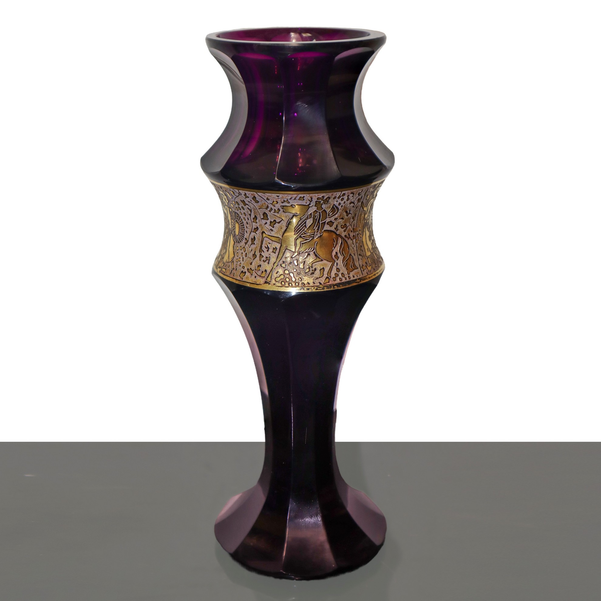 Vaso Art Decò Moser Karlsbad, in vetro viola con decorazioni in oro