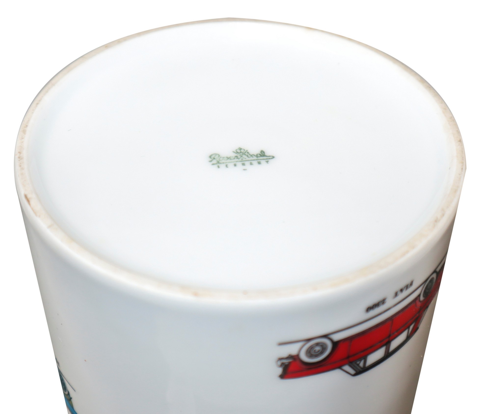 Rosenthal (1879) - Vaso cilindrico con raffigurazioni di macchine d'epoca H cm 25x12