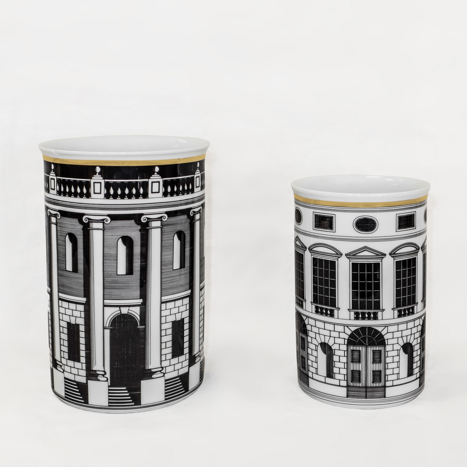 Piero Fornasetti - 2 Vasi in porcellana, decoro Palladiana. Piero Fornasetti per Rosenthal H cm 22 grande, h cm 19 Minima sbeccatura sul vaso grandeMinima sbeccatura sul vaso grande