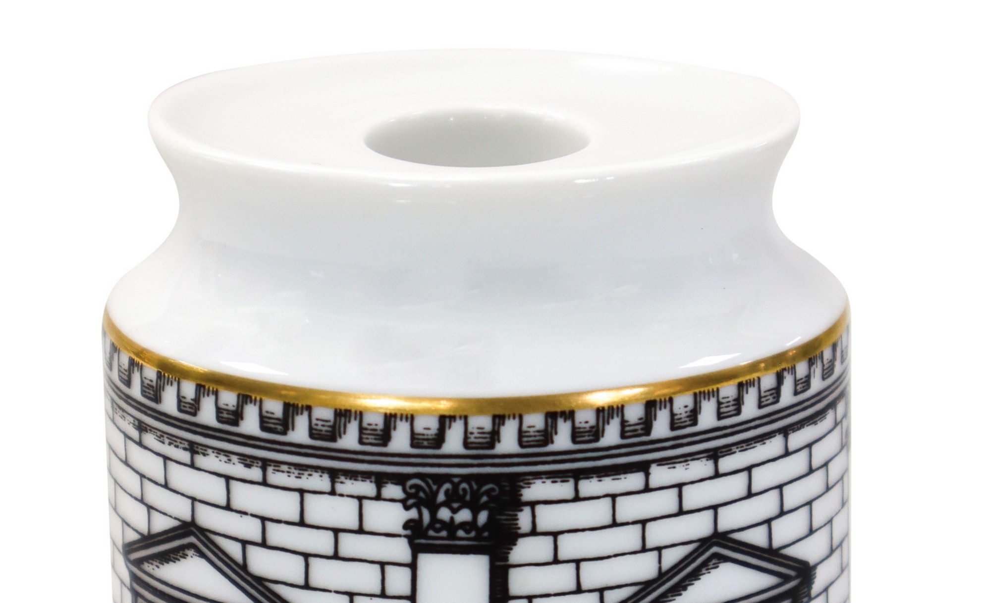 Piero Fornasetti - Piccolo portacandele in porcellana, decoro Palladiana. Piero Fornasetti per Rosenthal