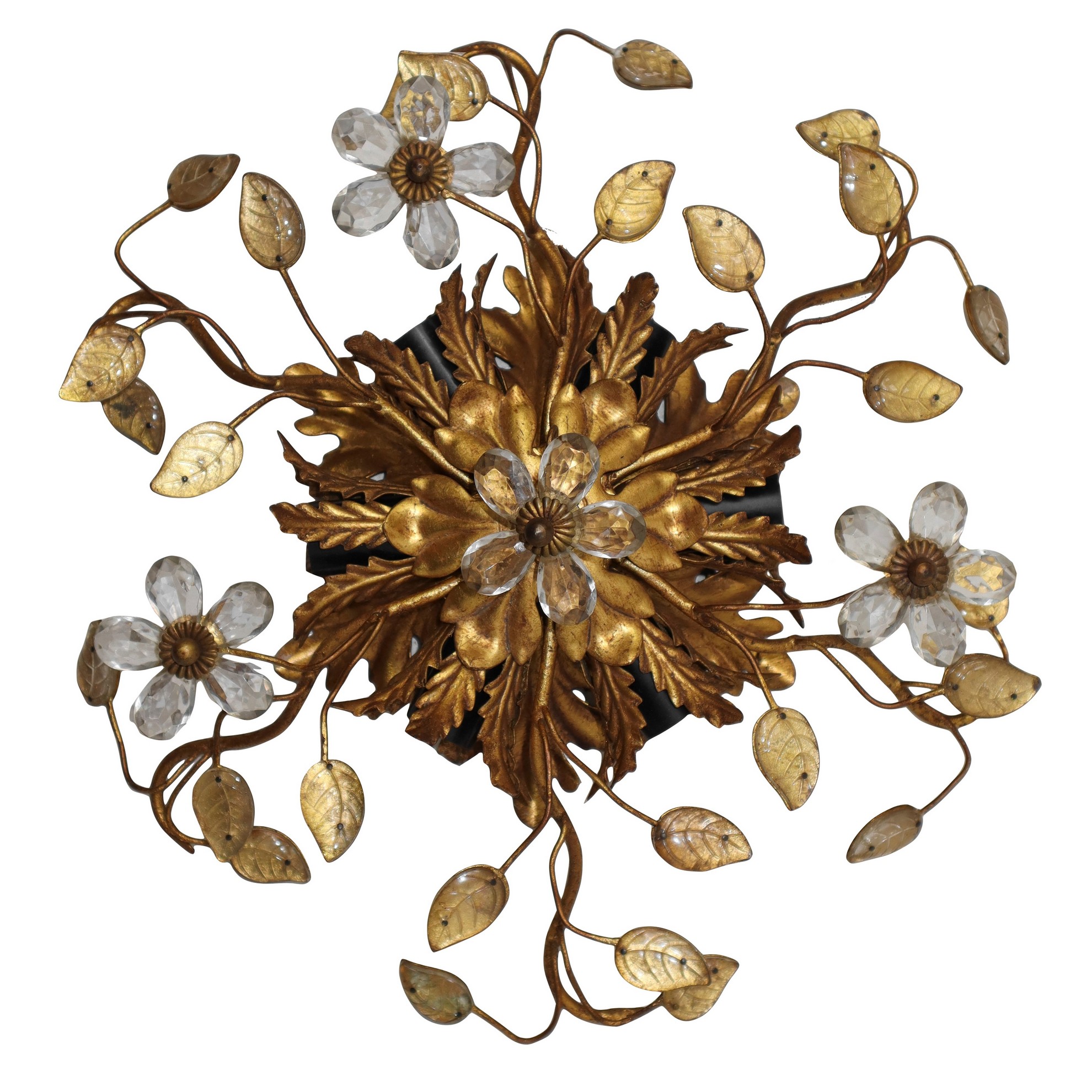 Plafoniera a 6 luci in metallo dorato con cristalli molati H cm 15 , L cm 36
