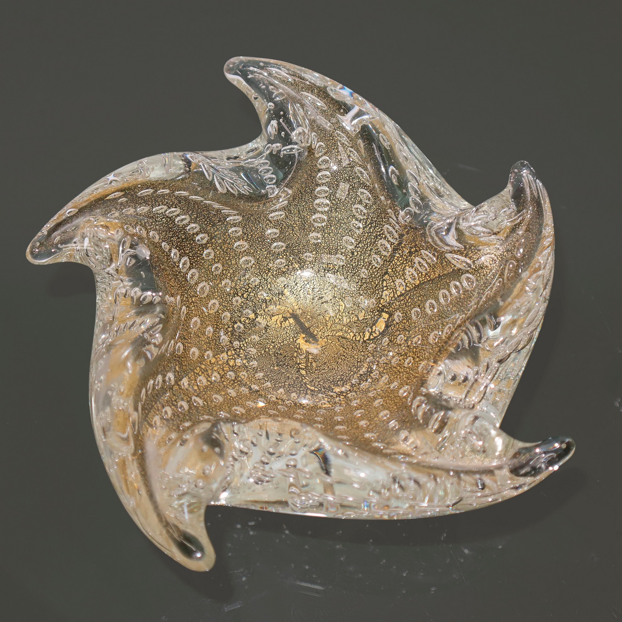 Barovier e Toso - Coppia di stelle in vetro di Murano pulegoso con iridescenze nei toni dell'oro