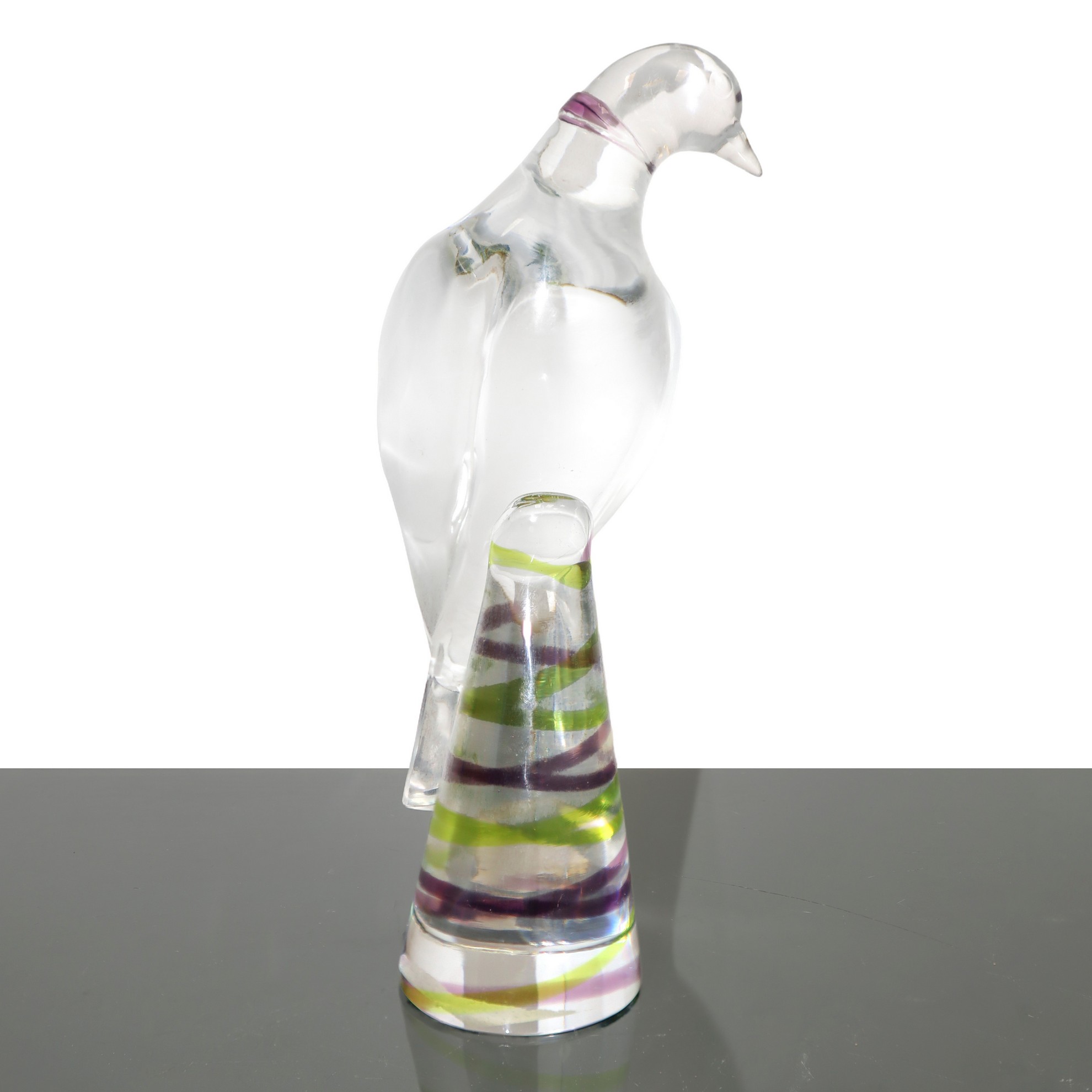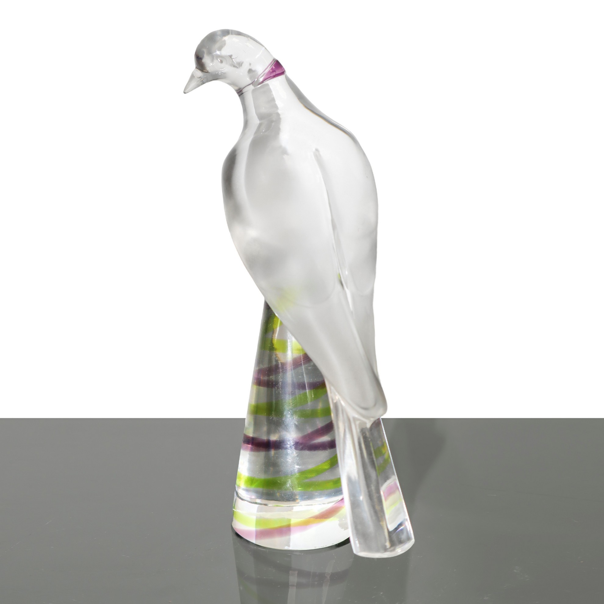 Lalique (1888) - Tortora con base colorata Firma della manifattura alla baseFirma della manifattura alla base