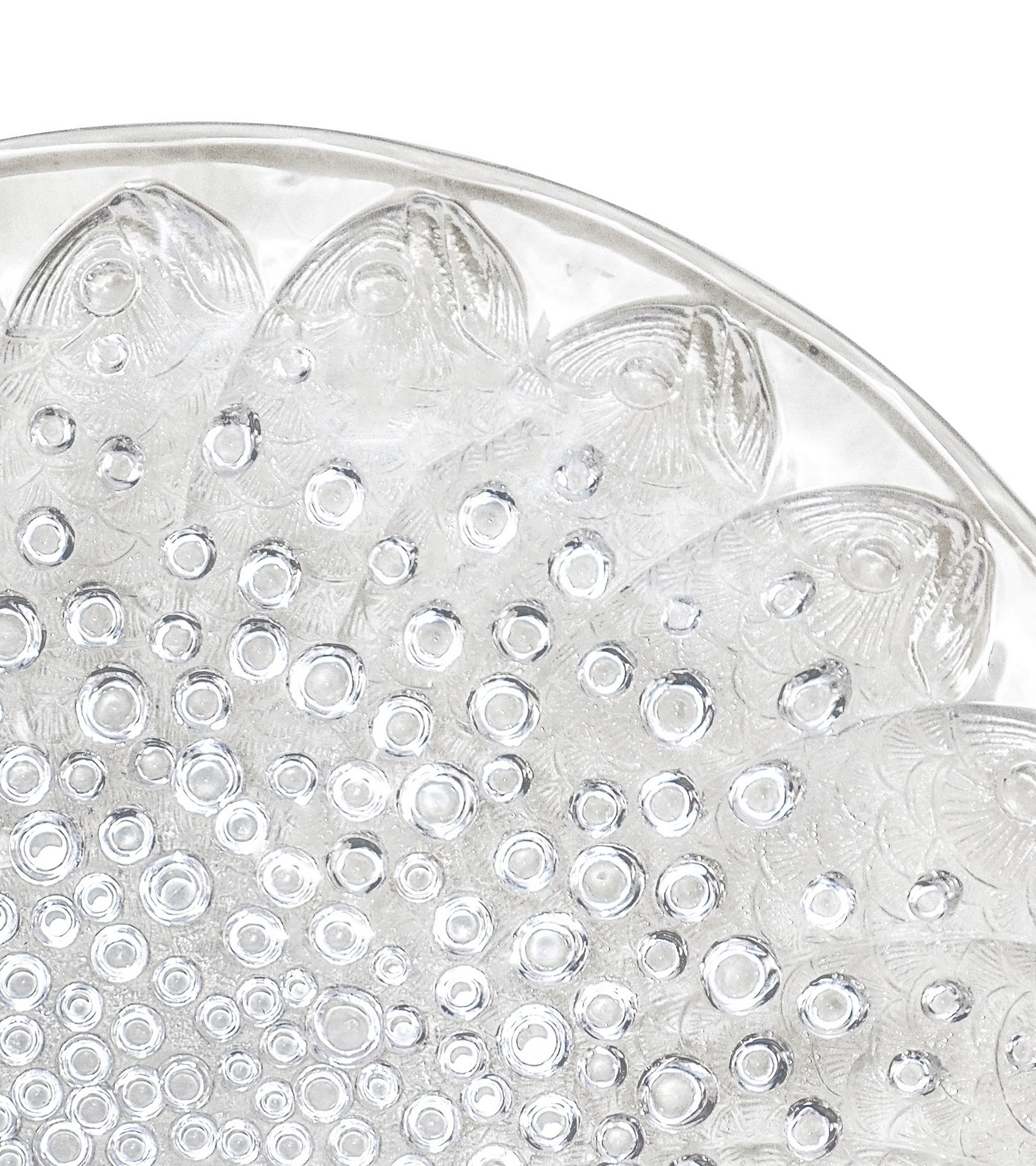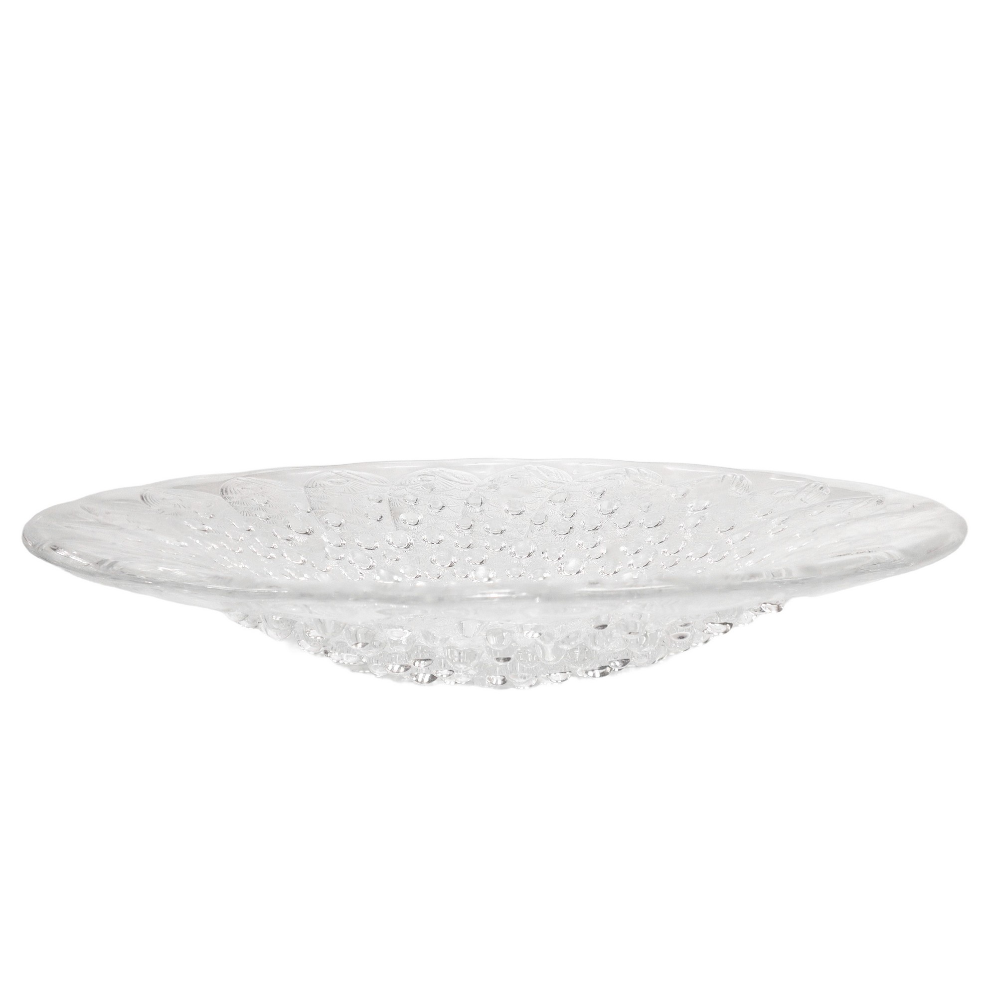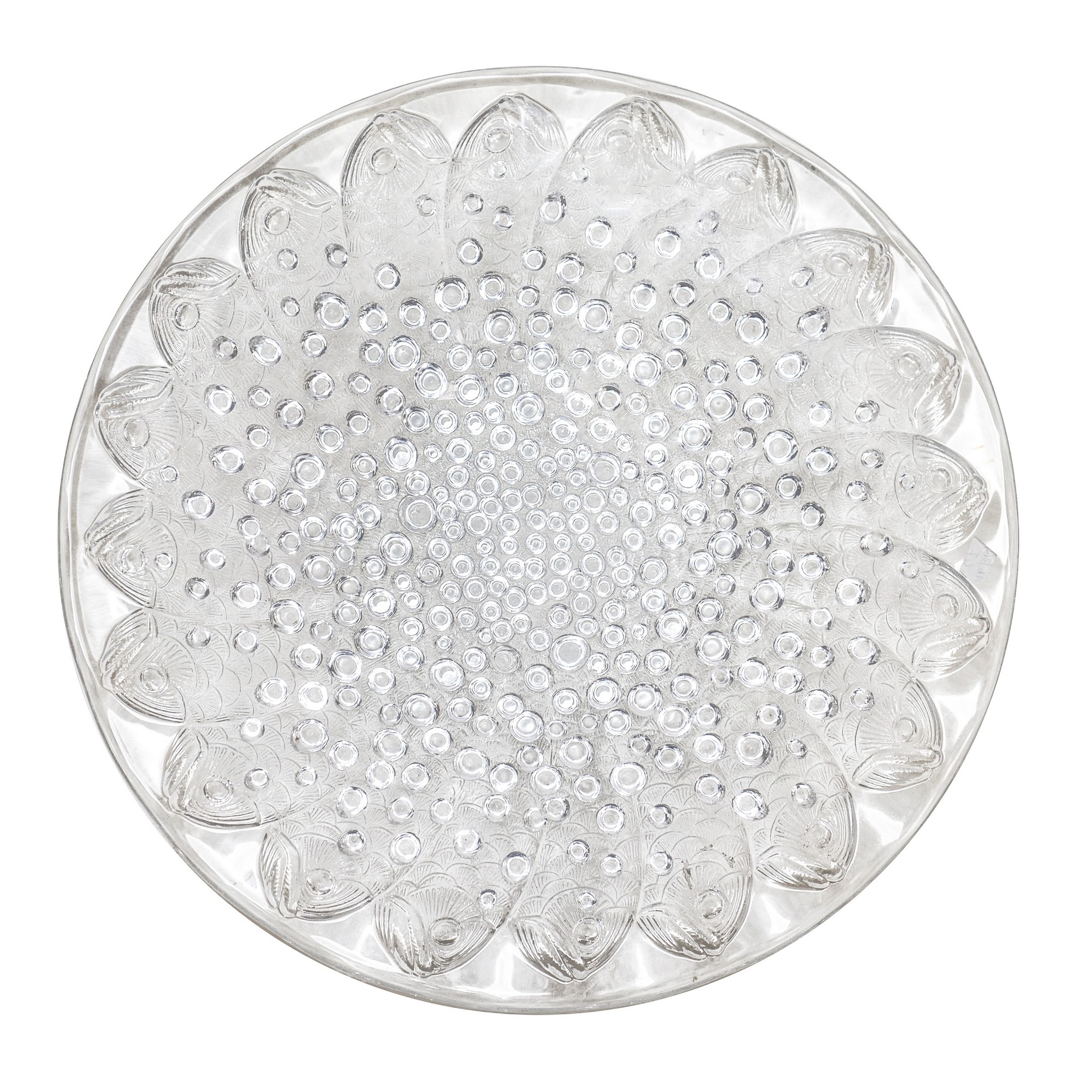 Lalique (1888) - Piatto "Roscoff fish" in vetro stampato opalescente pressato con decorazione di pesci e bolle Diametro cm 35,5