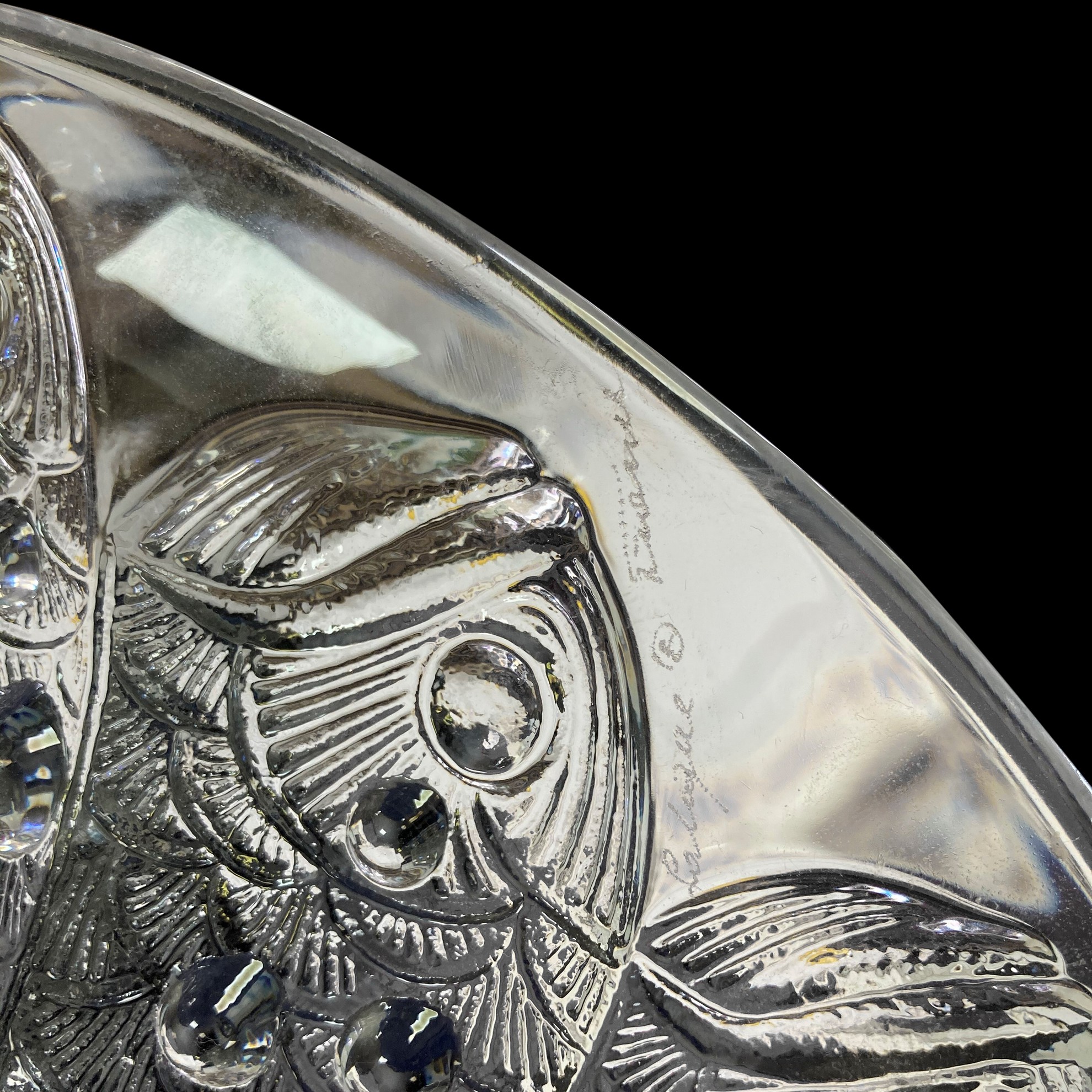 Lalique (1888) - Piatto "Roscoff fish" in vetro stampato opalescente pressato con decorazione di pesci e bolle