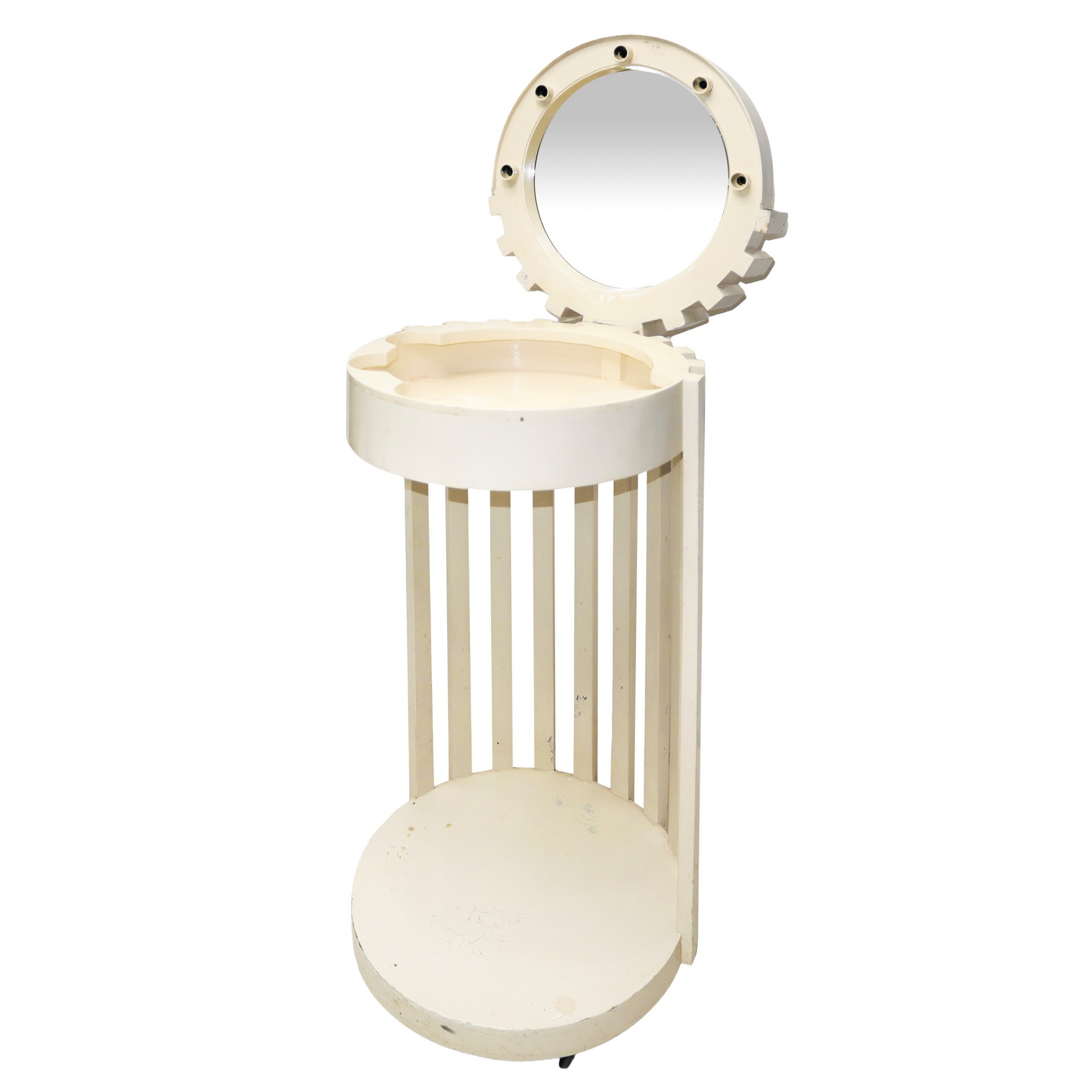 Toletta in legno laccato nei toni del crema H cm 90 x 47 Apribile , con specchiera. Presenti segni d'usoApribile , con specchiera. Presenti segni d'uso