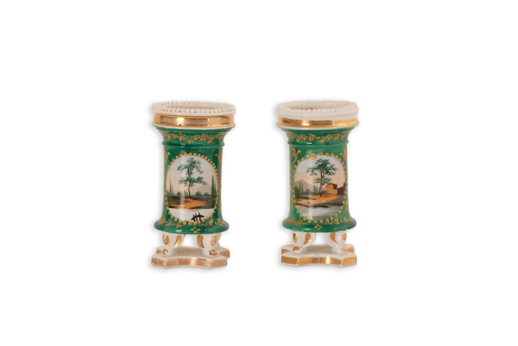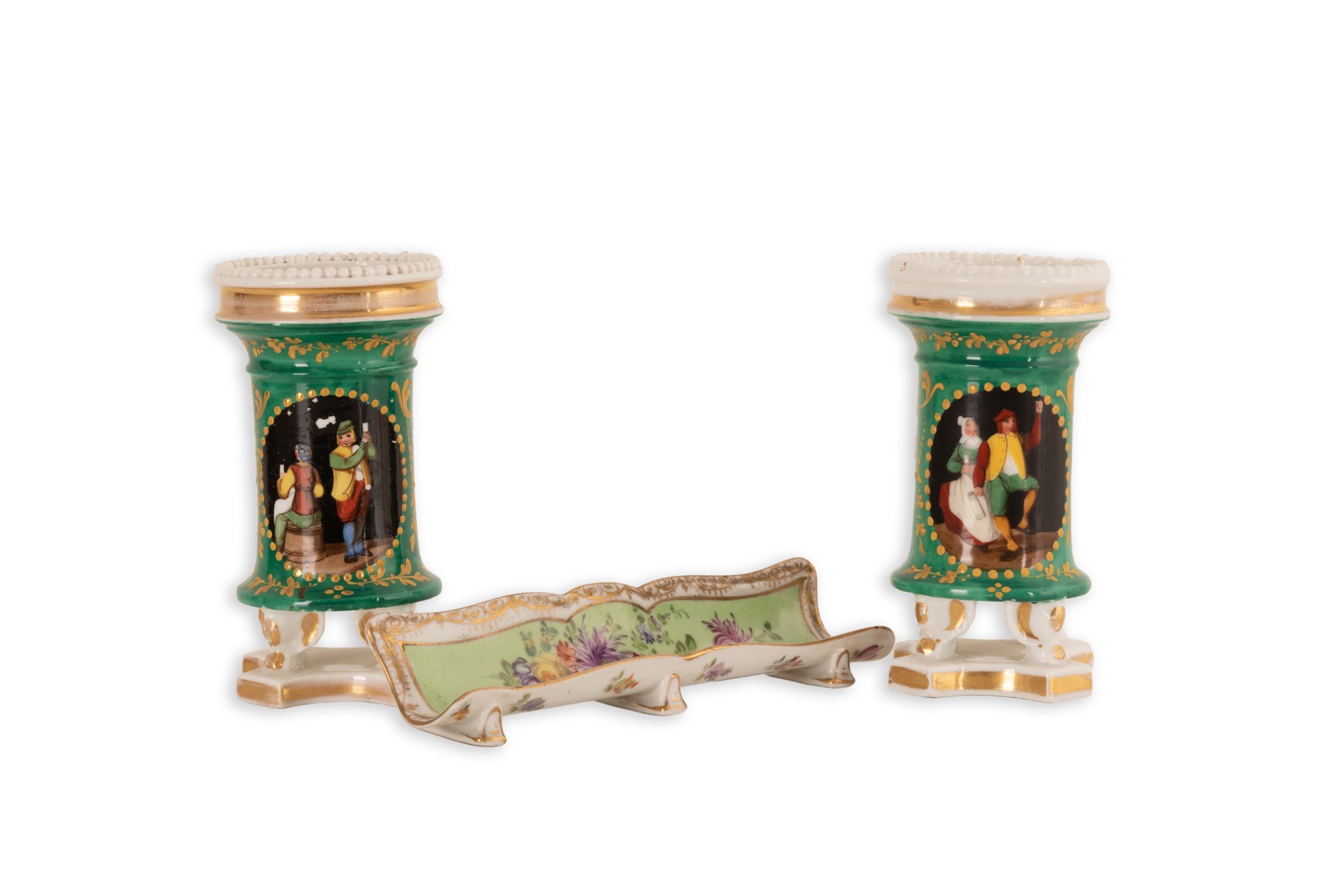 Lotto di due vasetti e un portapenne in ceramica di Capodimonte