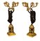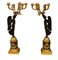 Coppia di straordinari flambeaux di gusto classico in bronzo dorato e patinato. Manifattura francese degli inizi del XIX secolo