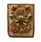 Lotto di due stampi in legno con fregi dorati a rilievo su fondo celeste e 1 stampo a forma di conchiglia policroma