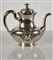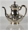 Caffettiera in argento sterling con doppio cartiglio e iniziali. Colonia inglese, metà del XIX secolo