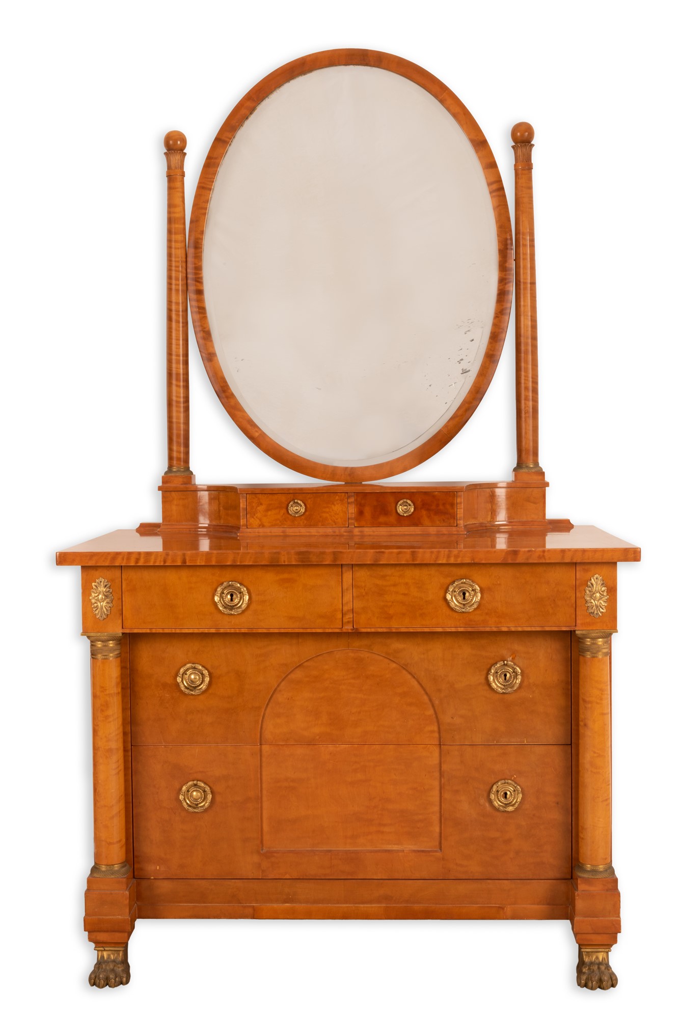 Comò con specchiera in stile Biedermeier cm 185x103x56