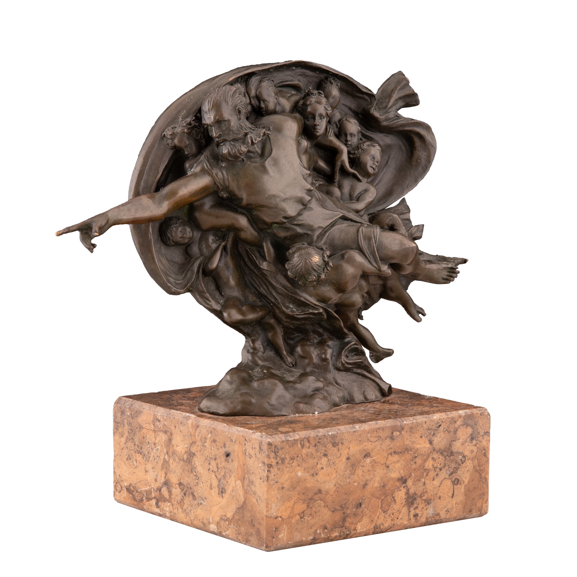 Scultura in bronzo con base di marmo raffigurante "La Creazione di Adamo" XX secolo