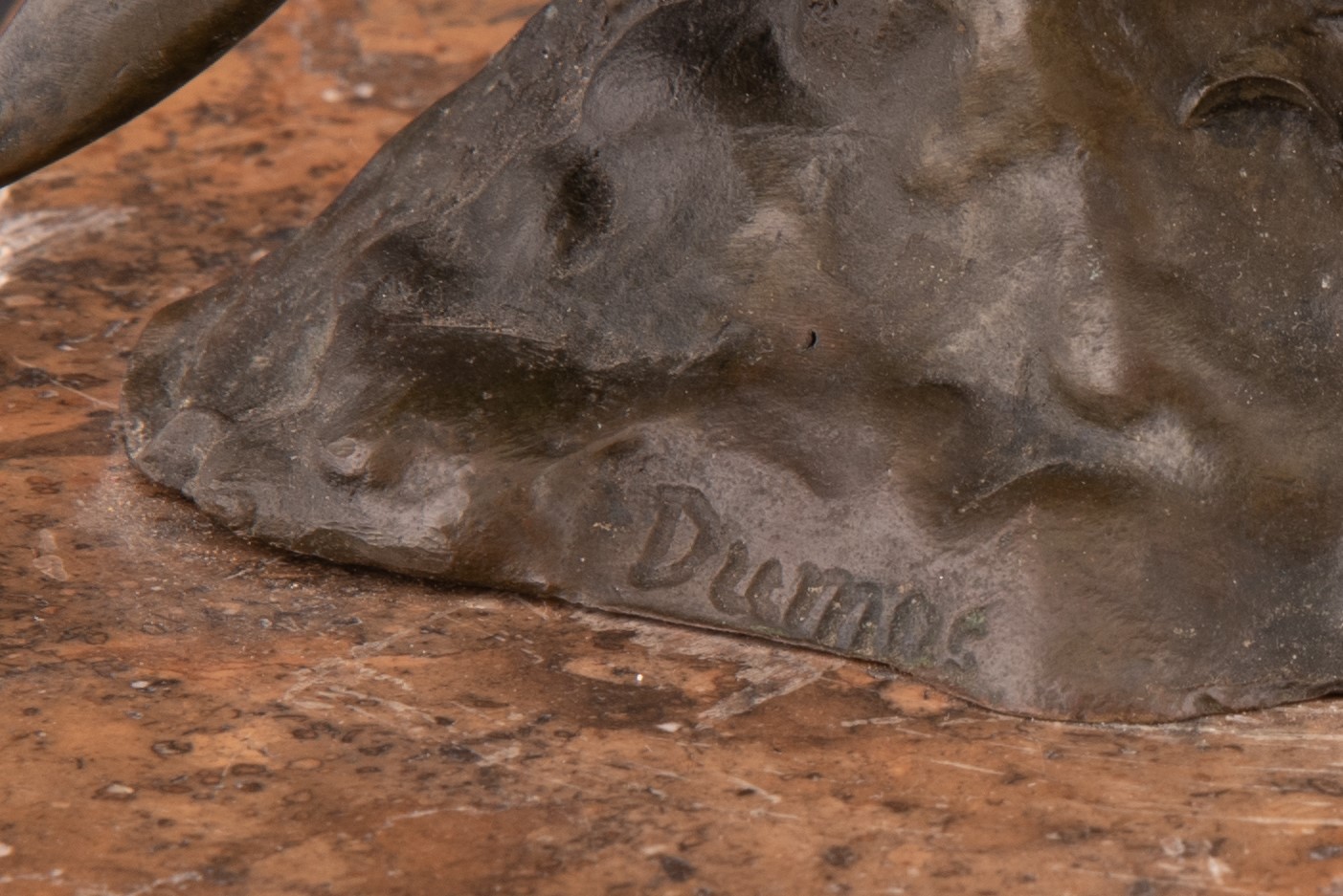 Lucas Dumas (XX secolo - ) Scultura in bronzo con base di marmo raffigurante "La Creazione di Adamo" XX secolo cm 27x15
