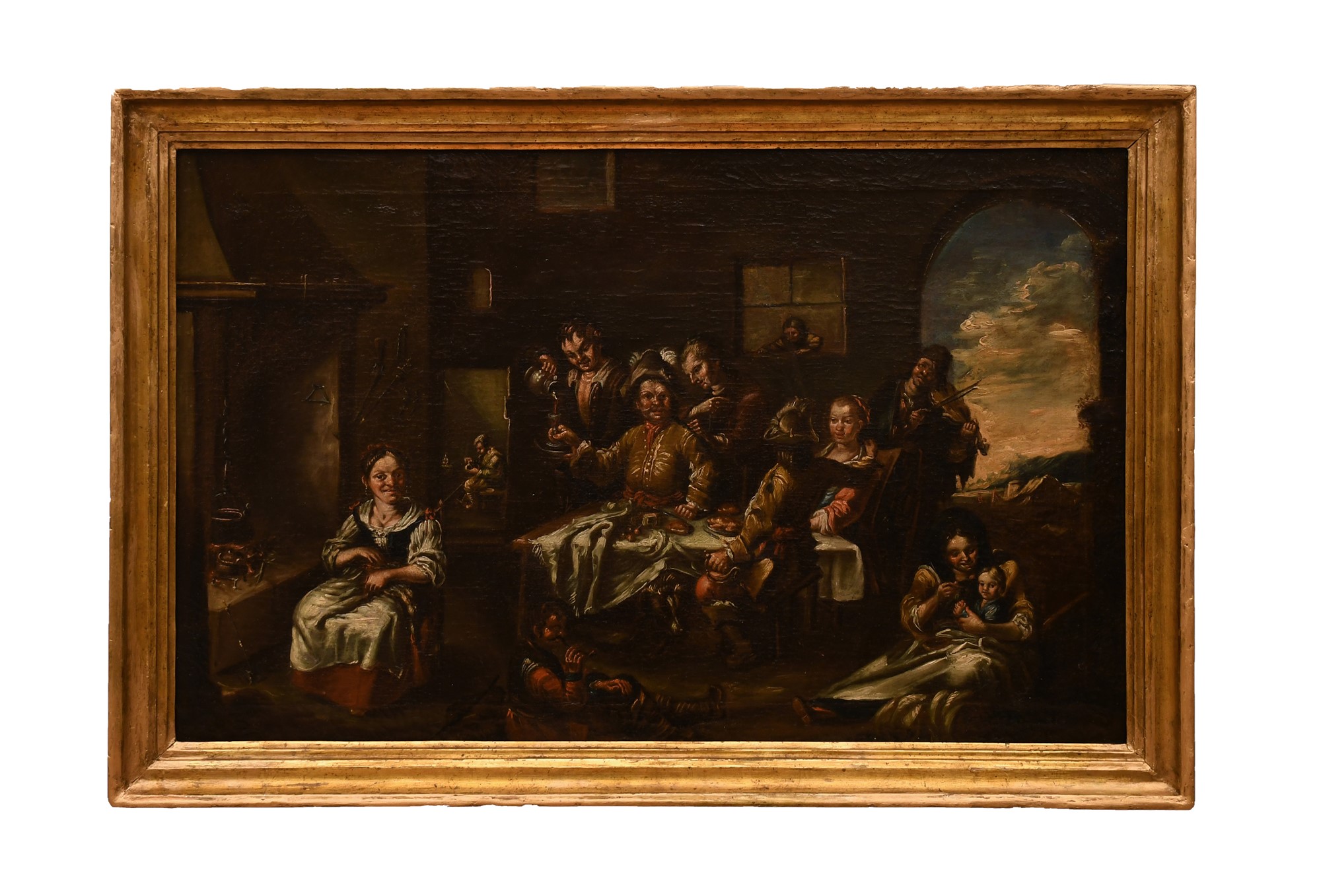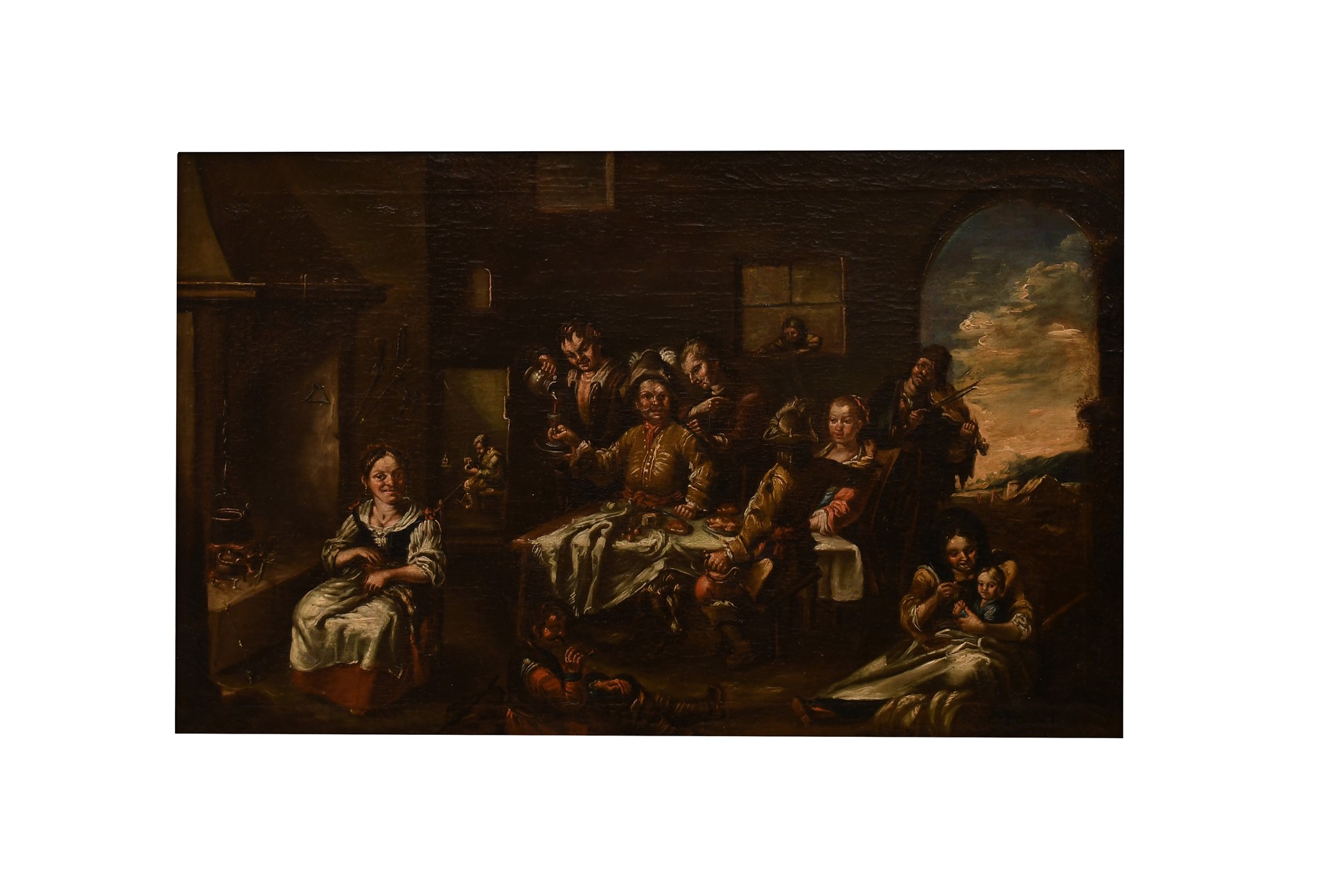 Matteo Ghidoni (attribuito a) (Firenze, 1626 - Padova, 1700) Interno di Taverna olio su tela cm 54x85