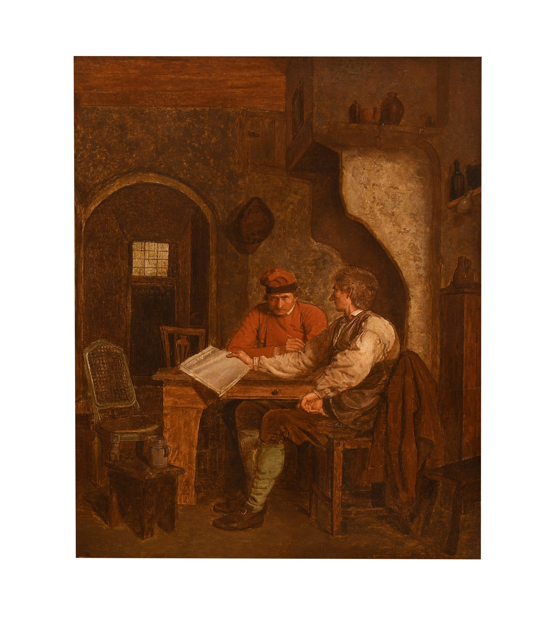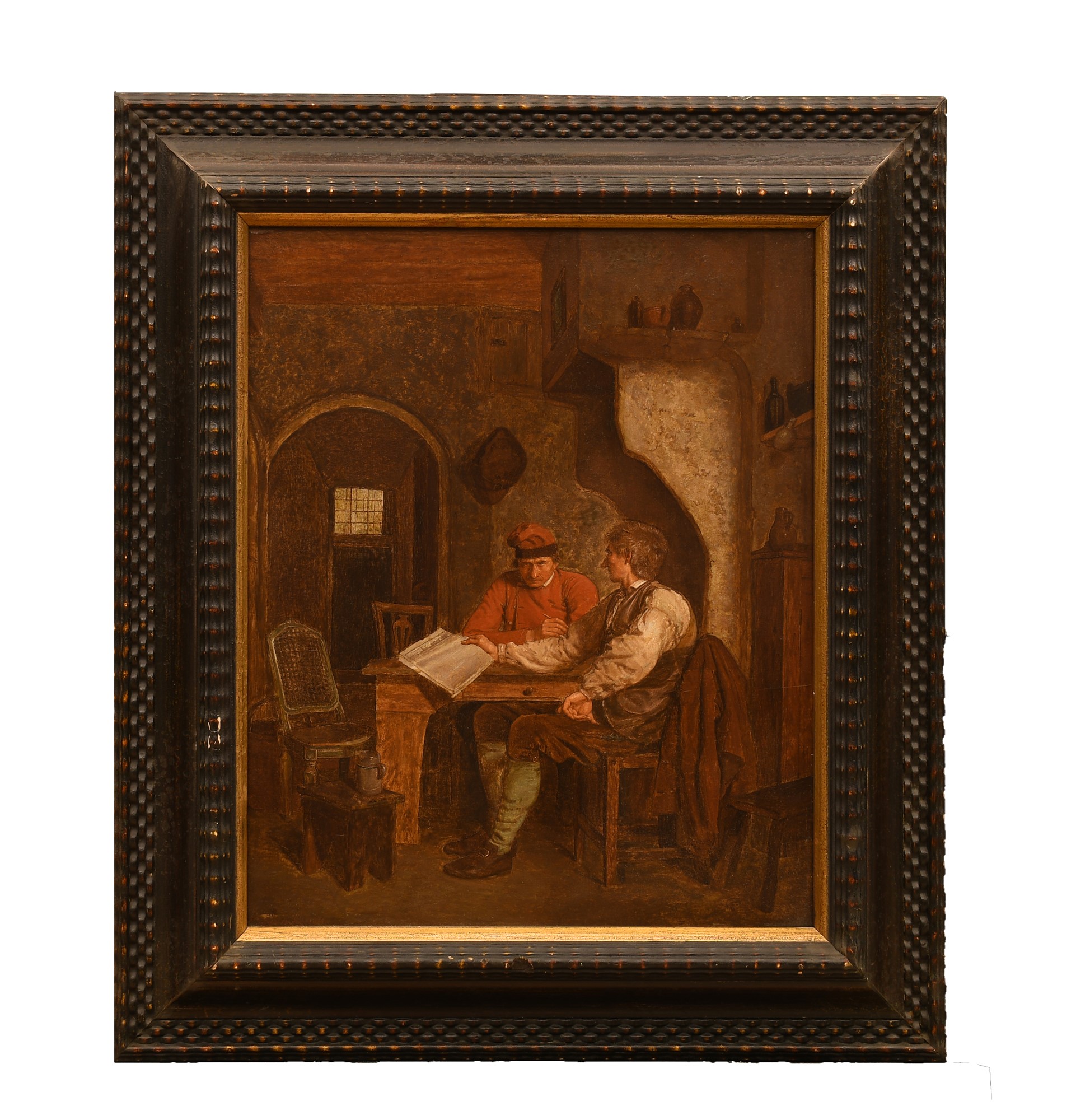 Pittore fiammingo del XIX secolo ( - ) Scena di interno olio su tavola cm 44x37