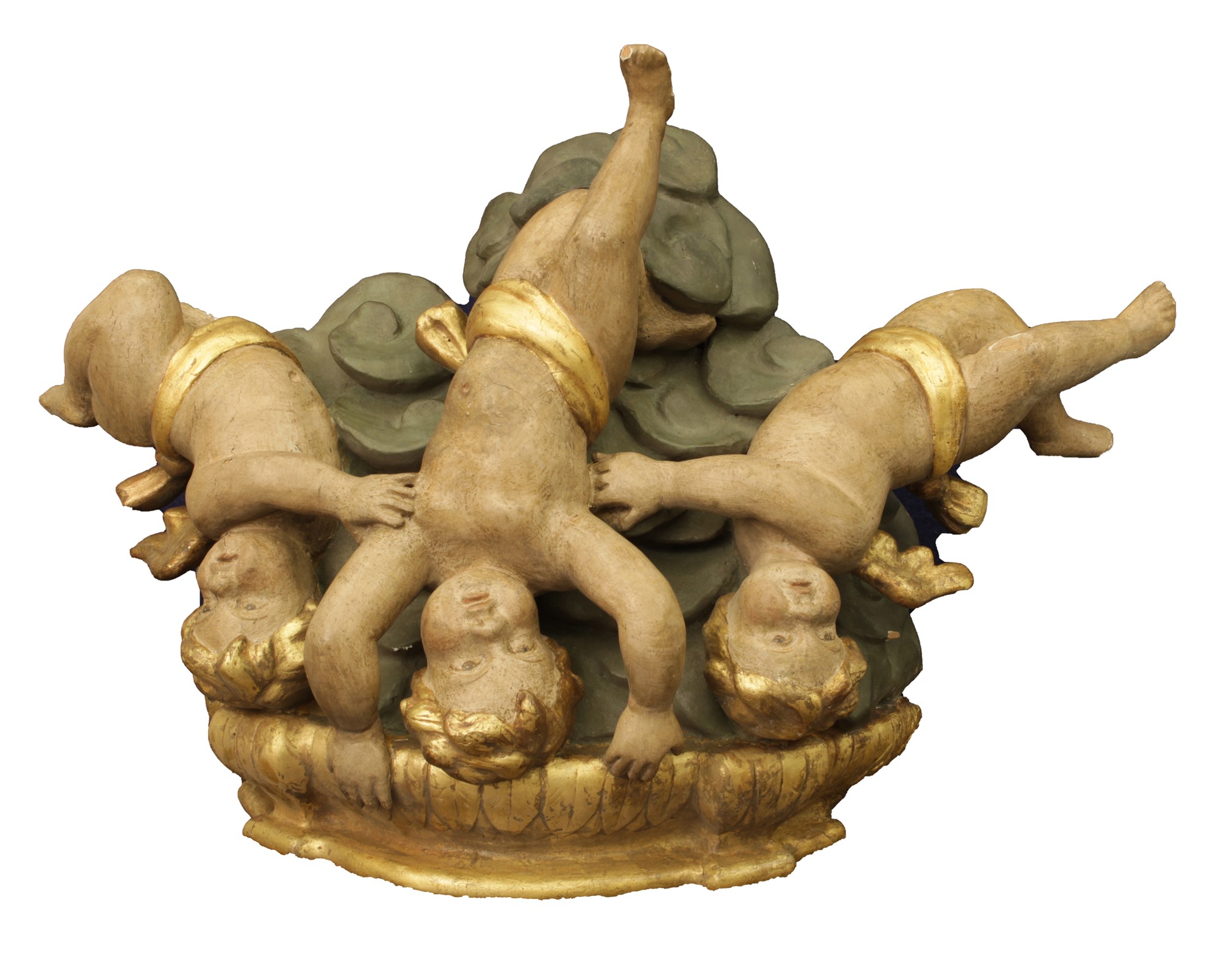 Lot 122 | Mensola in legno intagliata, dipinta e dorata con tre putti cm 42x60x26