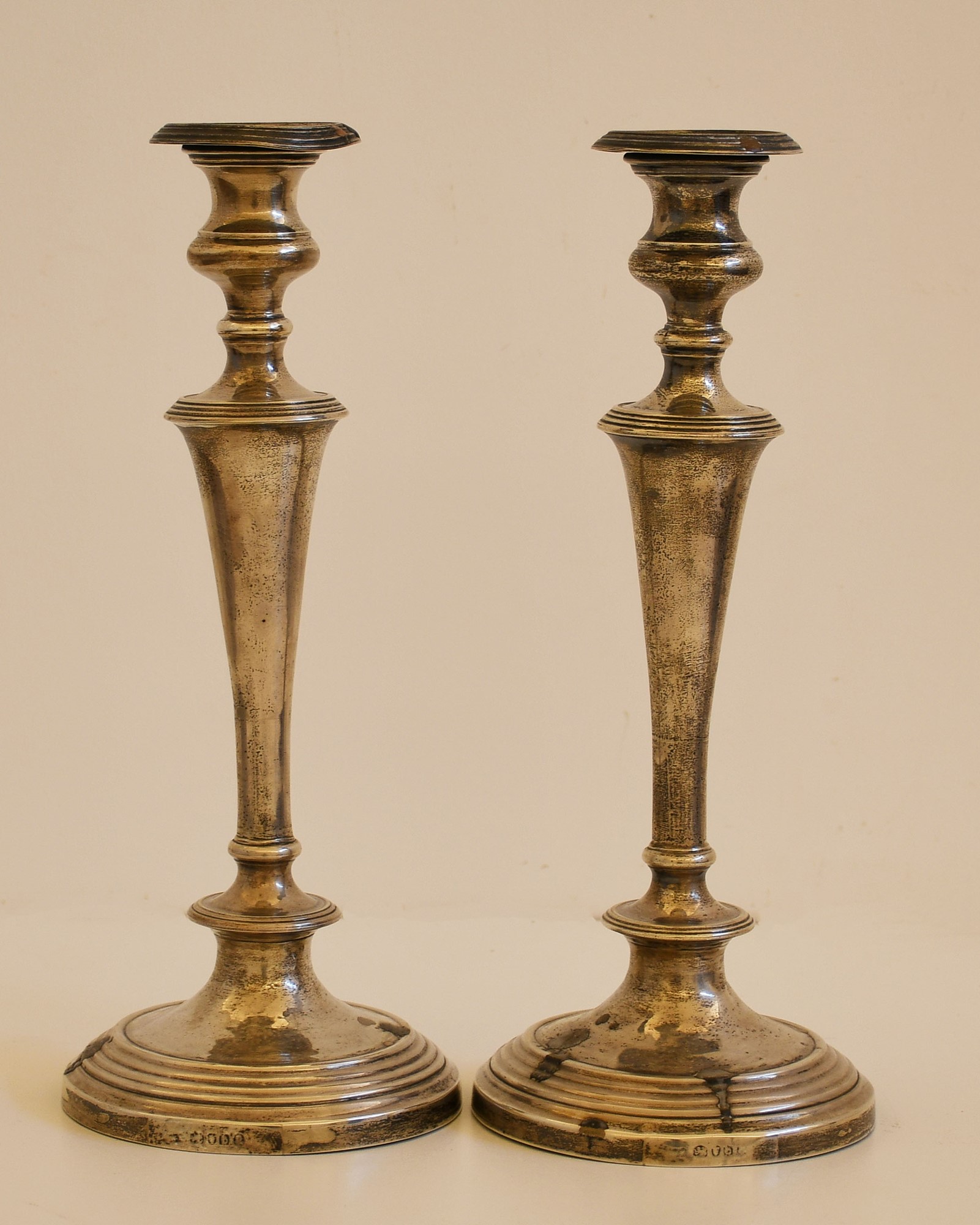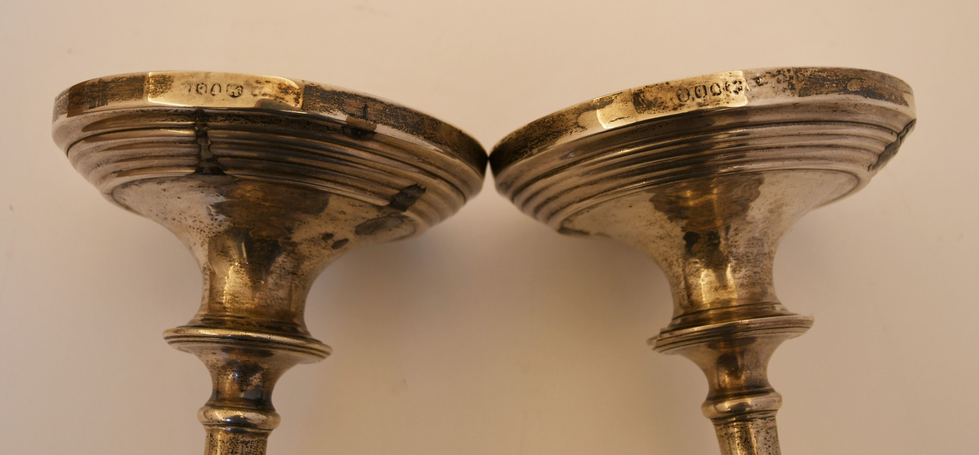 Lot 131 | Coppia di candelieri in argento 925/000. Londra, XIX secolo altezza cm 31