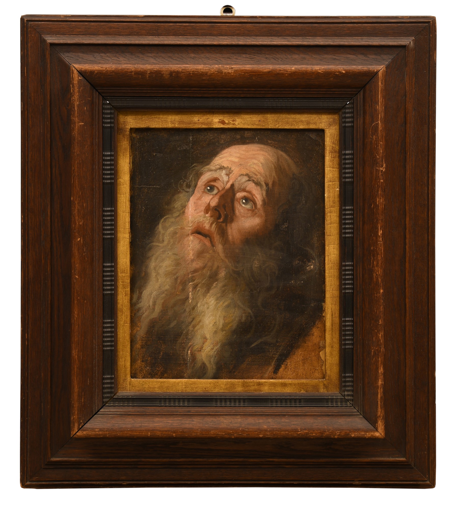 Pittore fiammingo del XVII secolo ( - ) Ritratto di anziano olio su manoscritto cm 34x44