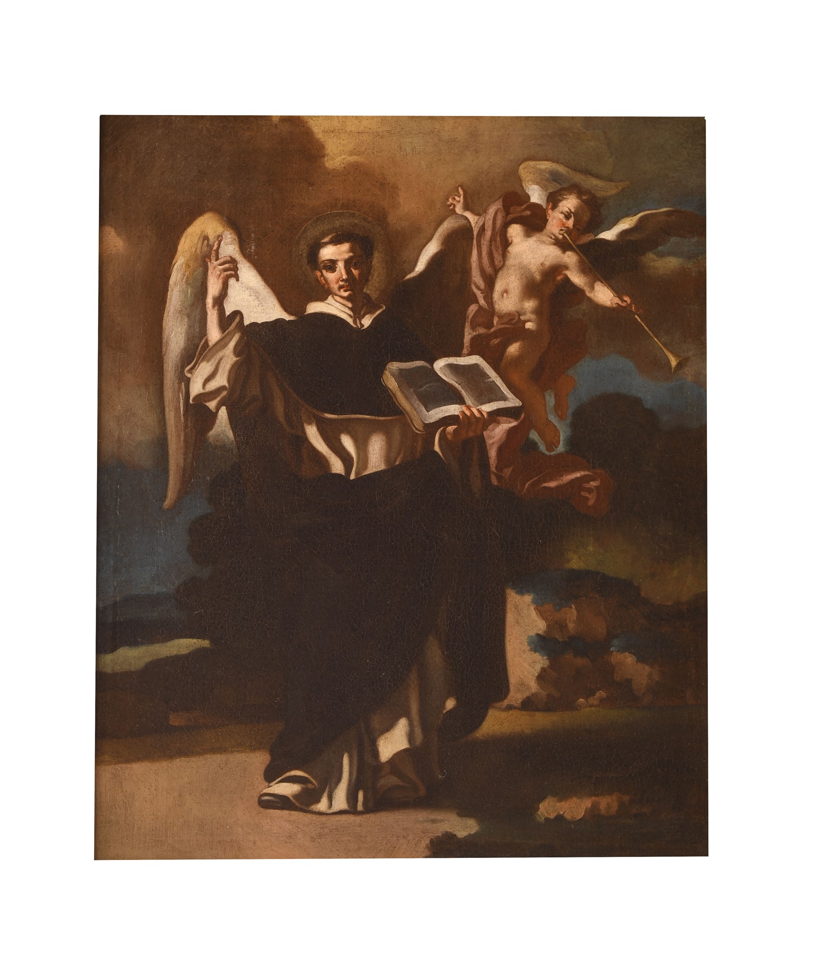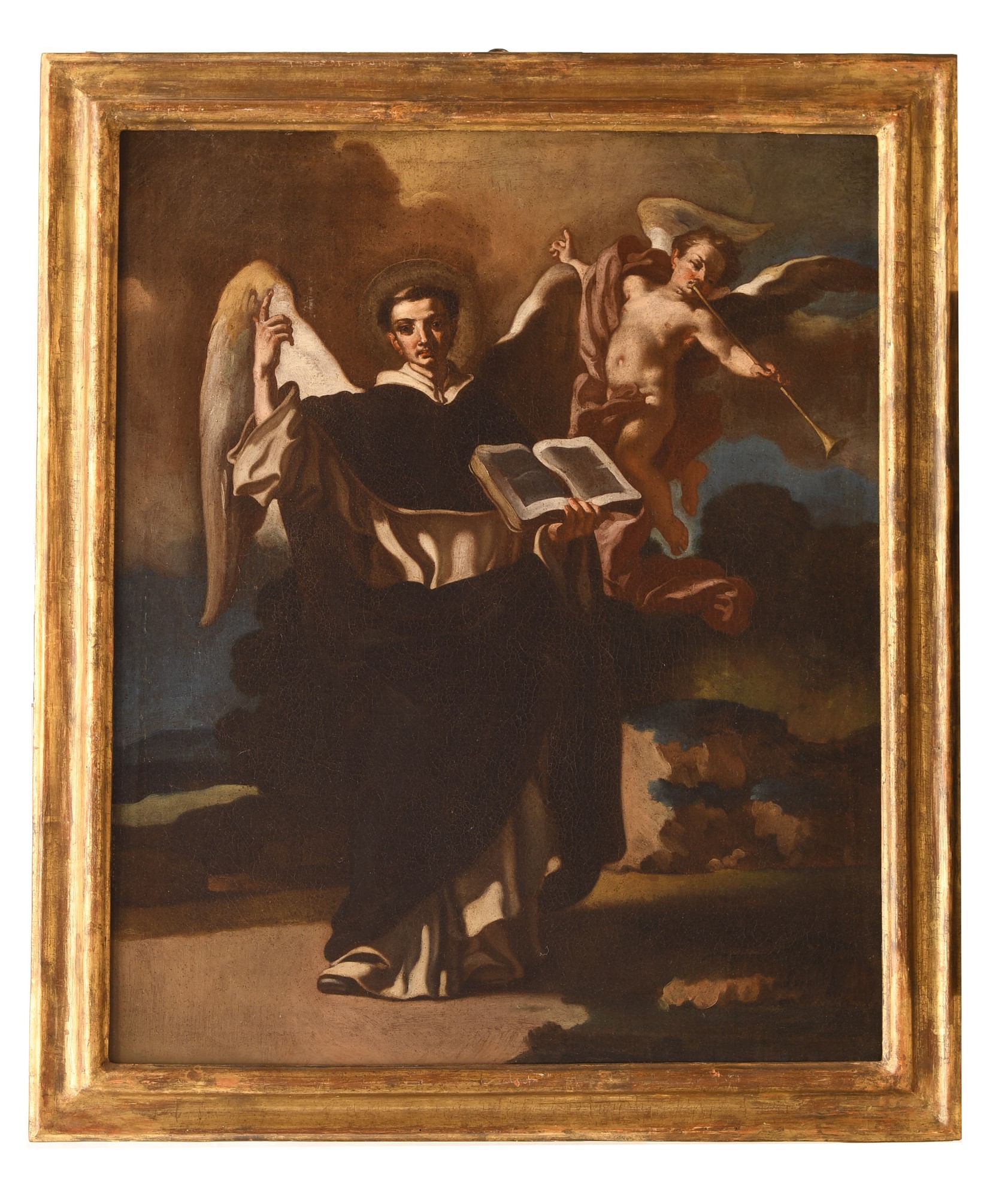 Francesco Solimena (bottega di) (Canale di Serino, 1657 - Barra, 1747) San Vincenzo Ferrer con angelo che suona la tromba Secolo XVIII olio su tela