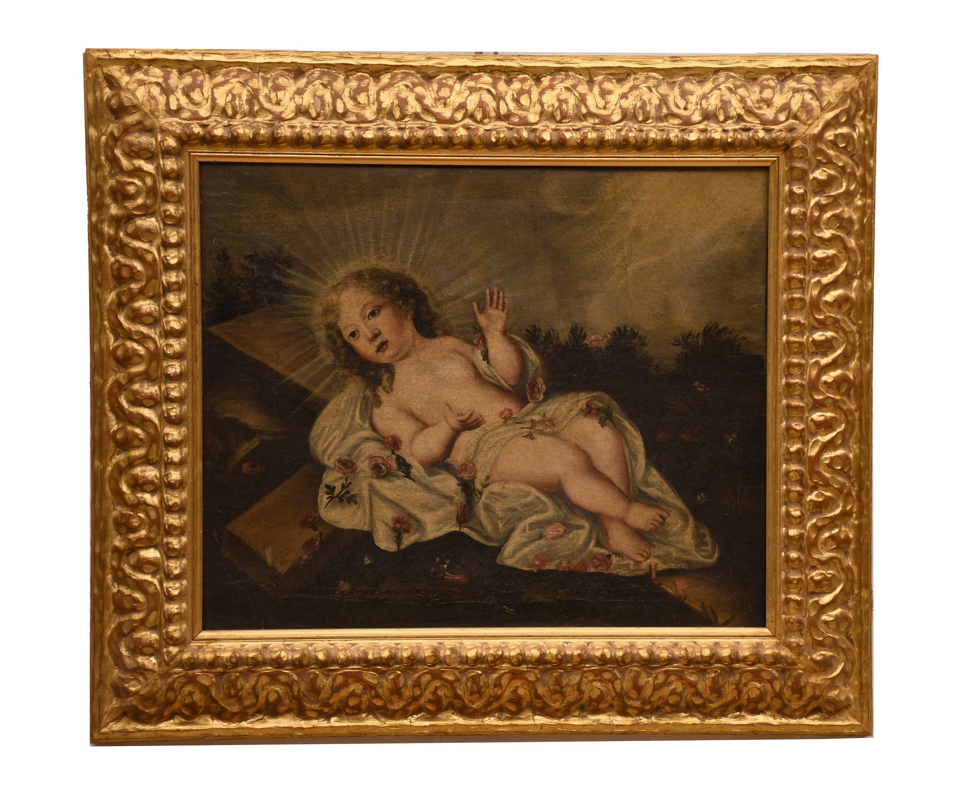 Pittore dell'Italia centrale del XVII secolo ( - ) Gesù Bambino olio su tela cm 42x52; con cornice cm 63,5x73,5
