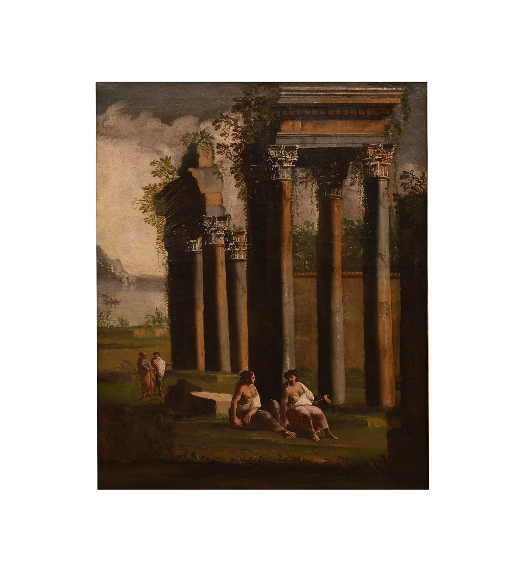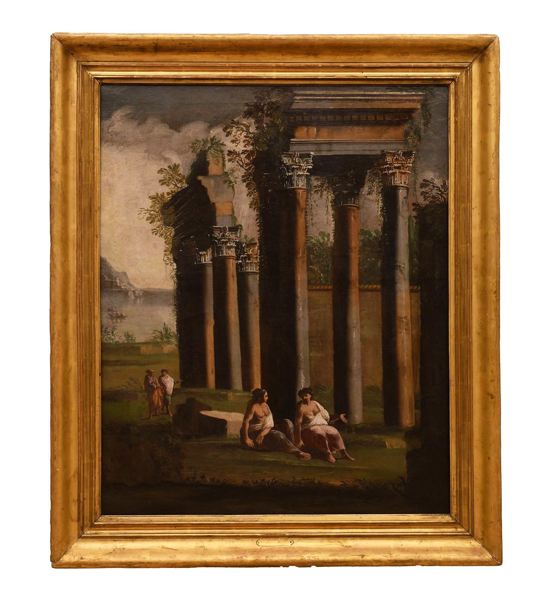 Alberto Carlieri (attribuito a) (Roma, 1672 - Roma, 1720) Capriccio architettonico con rovine classiche. olio su tela cm 61x75