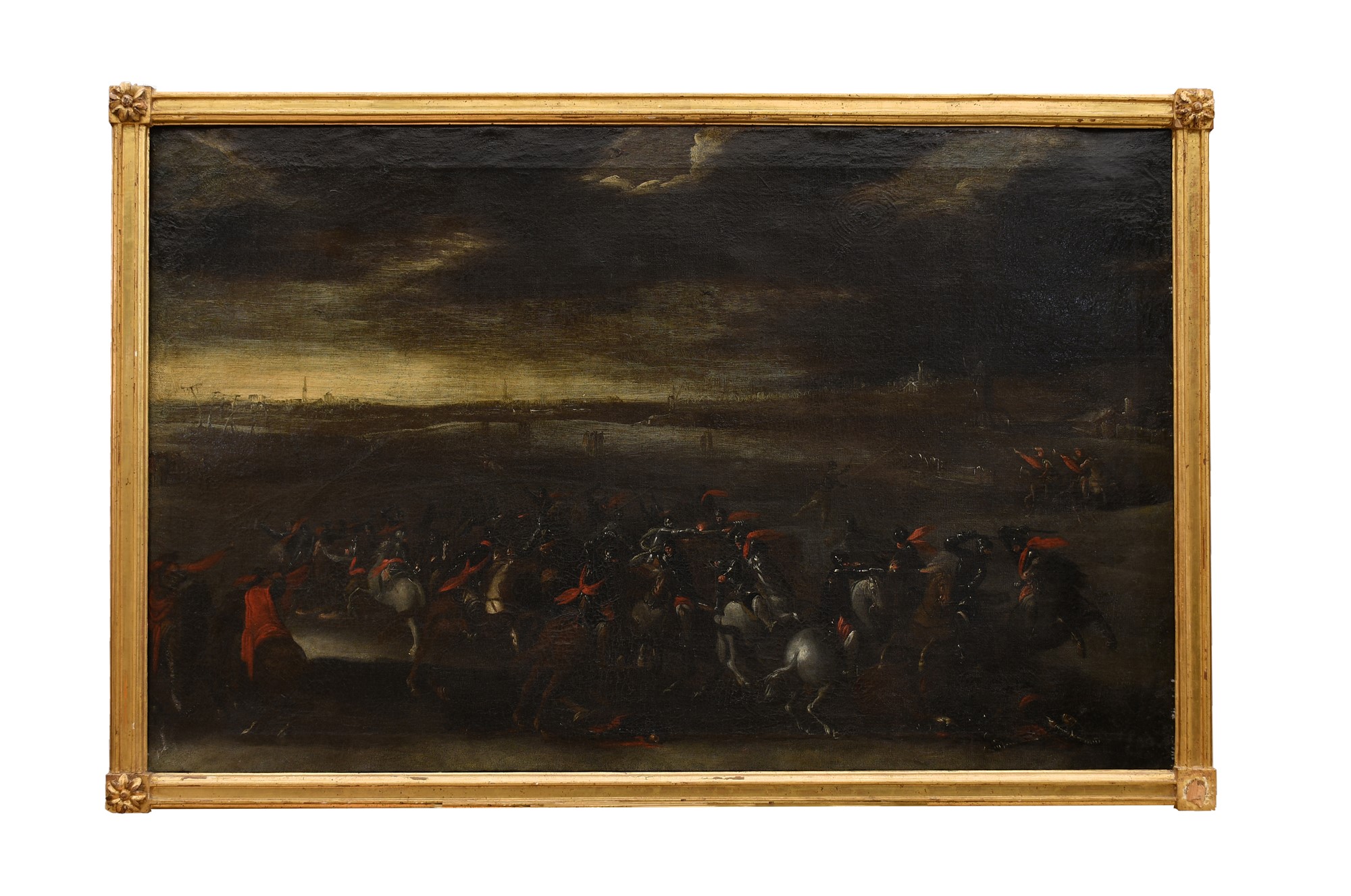 Scuola dell'Italia centrale del XVIII secolo ( - ) Battaglia in notturno olio su tela cm 74x118