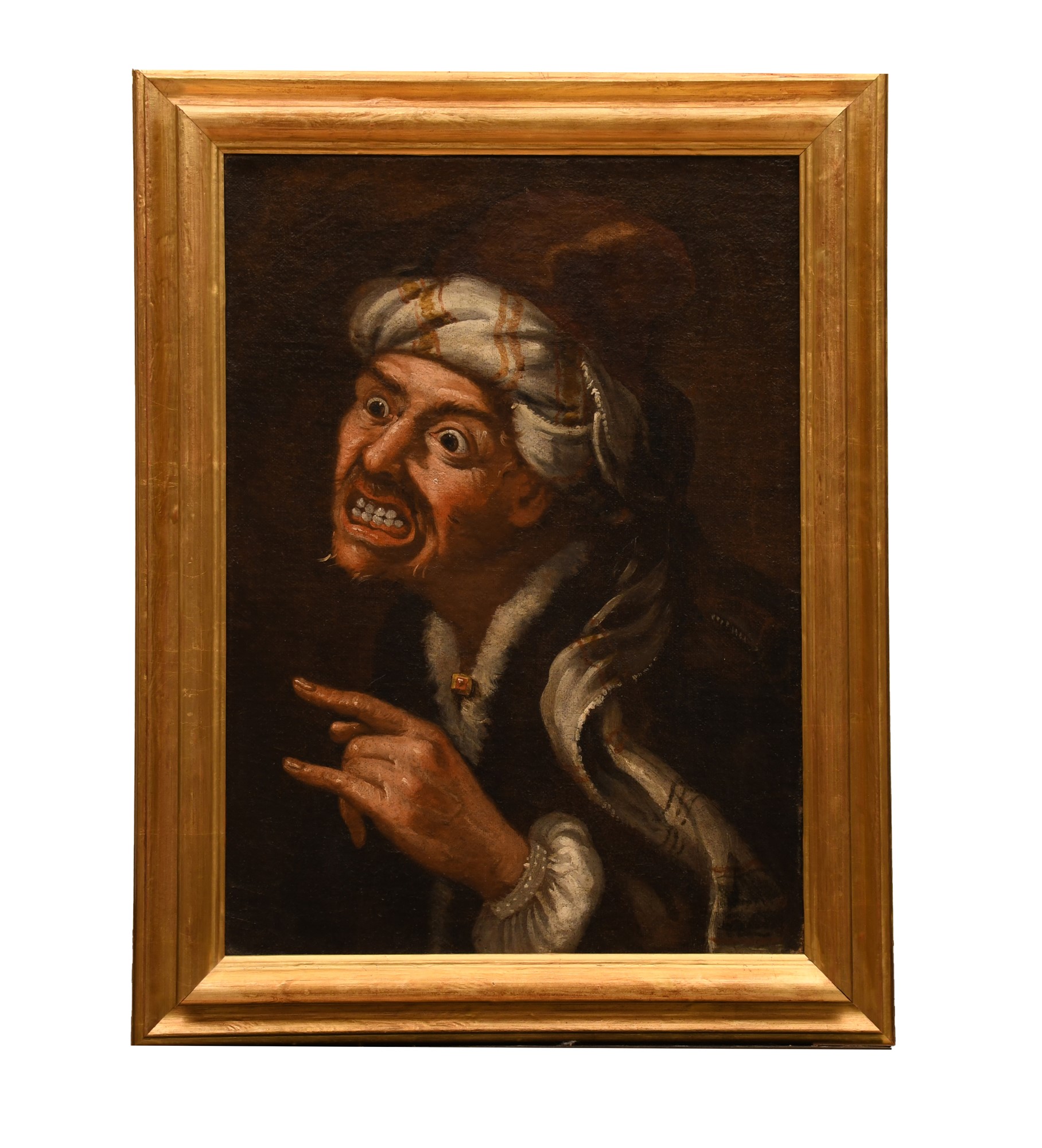 Antonio Cifrondi (Clusone, 1656 - BRescia, 1730) Uomo col turbante fa gli scongiuri olio su tela cm 42x58