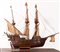 Manifattura italiana del XX secolo ( - ) Modello di "galeone Golden Hind" Legno cm 64x78x14
