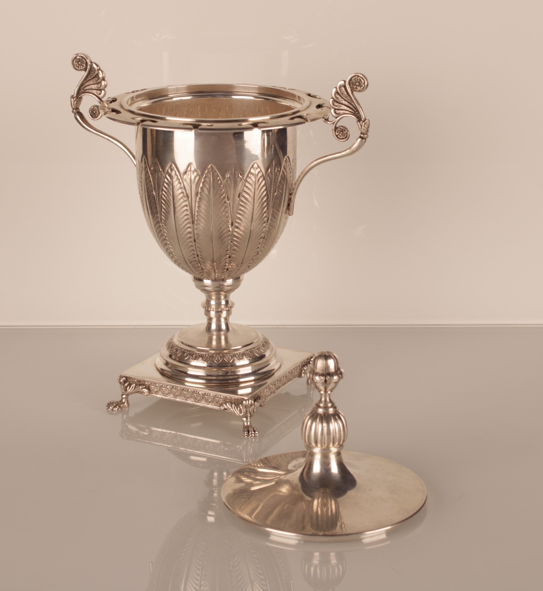 Calice in argento 800/000 con coperchio finemente cesellato g 520