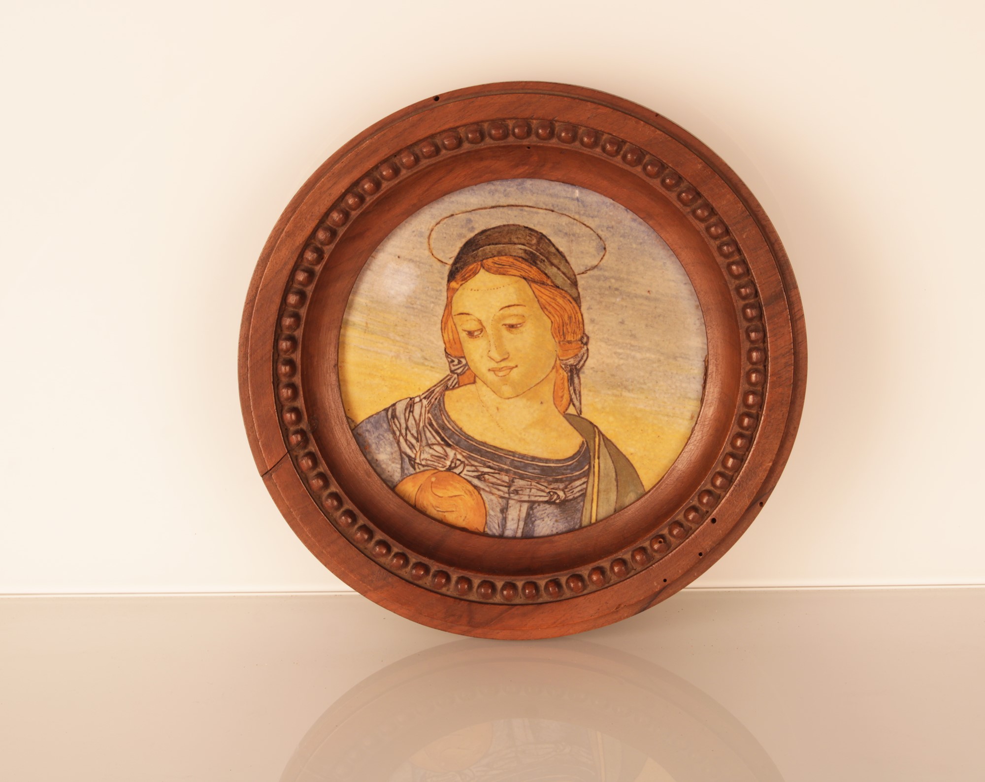 Ceramica Madonna tonda diametro cm 14; con cornice diametro cm 21