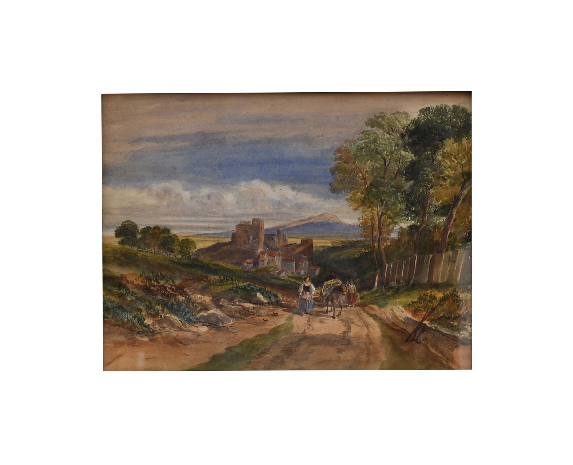 Paesaggio agreste (Ciociaria?) con figure di viandanti