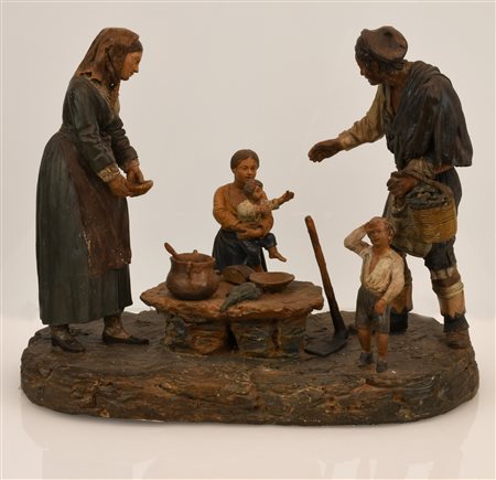 La famiglia dei contadini. Cerchia dei Vaccaro, Caltagirone 1850 terracotta dipinta cm 26x21x21