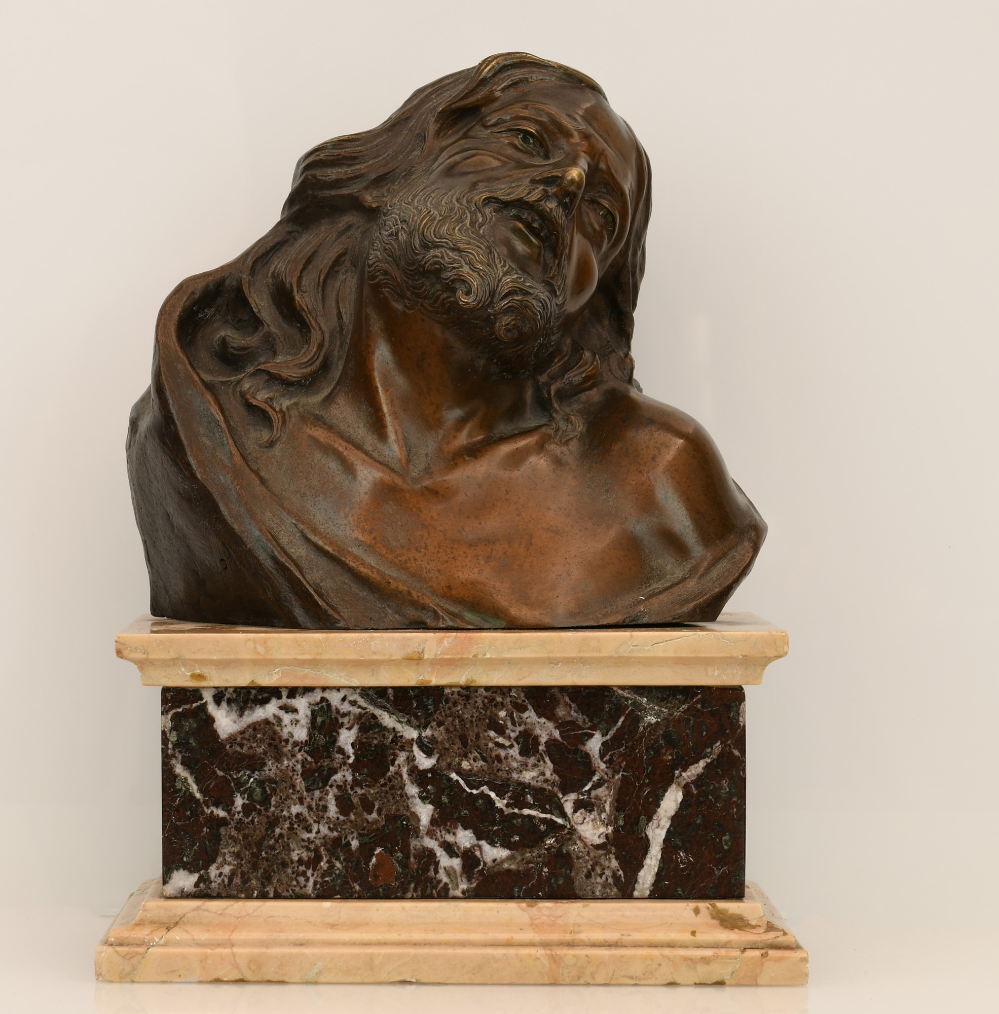 Scultura in bronzo con busto di Cristo sofferente