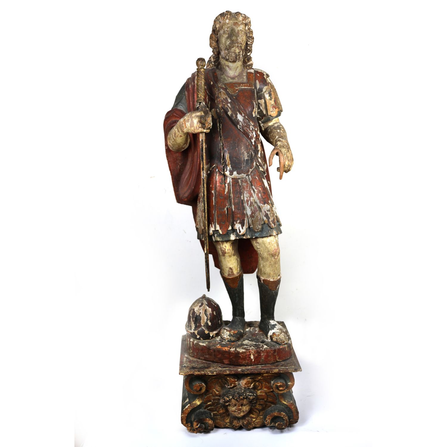 Soldato in foggia classica, scultura in volume in legno XVII secolo 140 x 30 x 41 cm