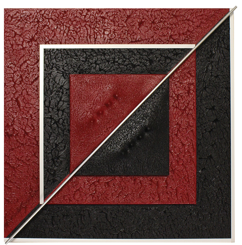 Saba Senza titolo tecnica mista su tre tele sovrapposste di cui una estroflessa e bacchetta di metallo, cm. 60x60 opera non firmata