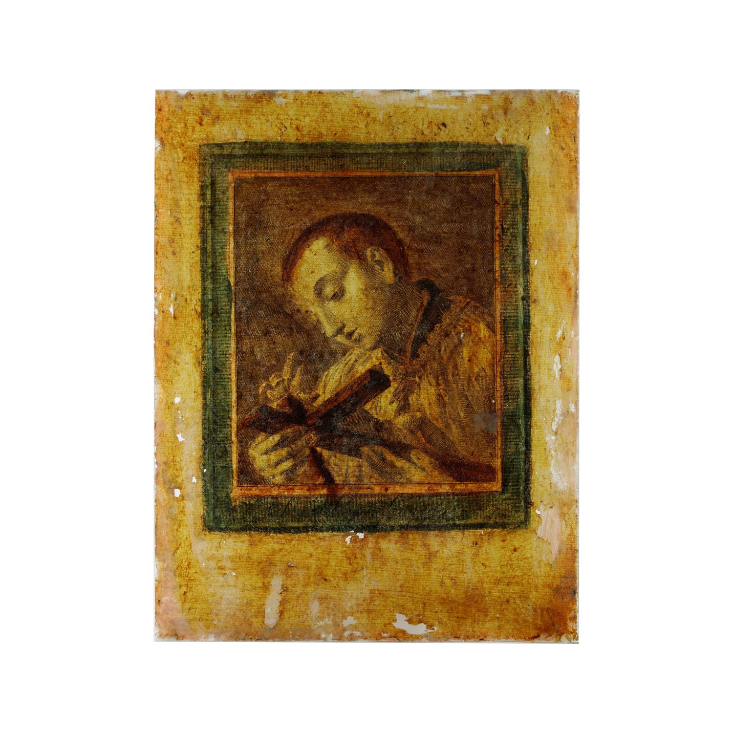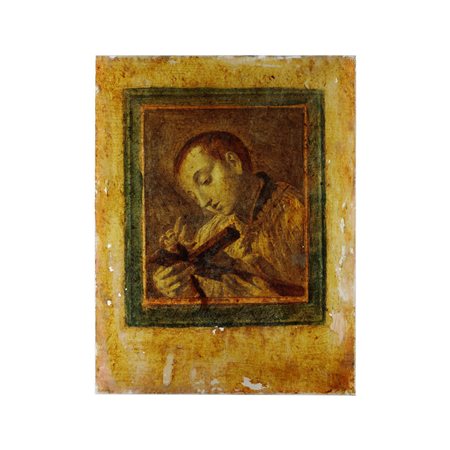 Religioso in preghiera XIX secolo serigrafia su vetro 22 x 19 cm