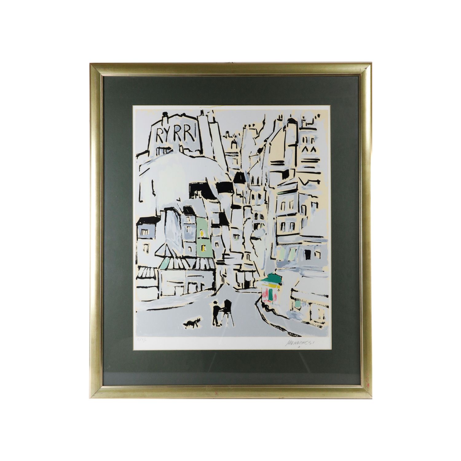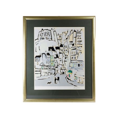 SANTE MONACHESI (Macerata, 1910 - Roma, 1991) Veduta di città, multiplo su carta 60 x 50 cm