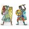 Coppia di guerrieri, scultura in forma in ceramica policroma metà XX secolo