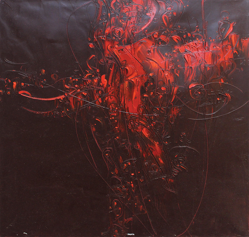 Francia Camillo Figura, 2002 olio su tela, cm. 70x70 firmato in basso al centro, firmato datato e intitolato al retro, numero di archivio al retro, al retro etichetta mostra "Camillo Francia tra il rosso e il nero" tenutasi presso la Galleria Carlo Carrà di Alessandria dal 20 dicembre 2003al 18 gennaio 2004 con il patrocinio della Provincia di Alessandria, pubblicato nel catalogo della mostra a pag. 70