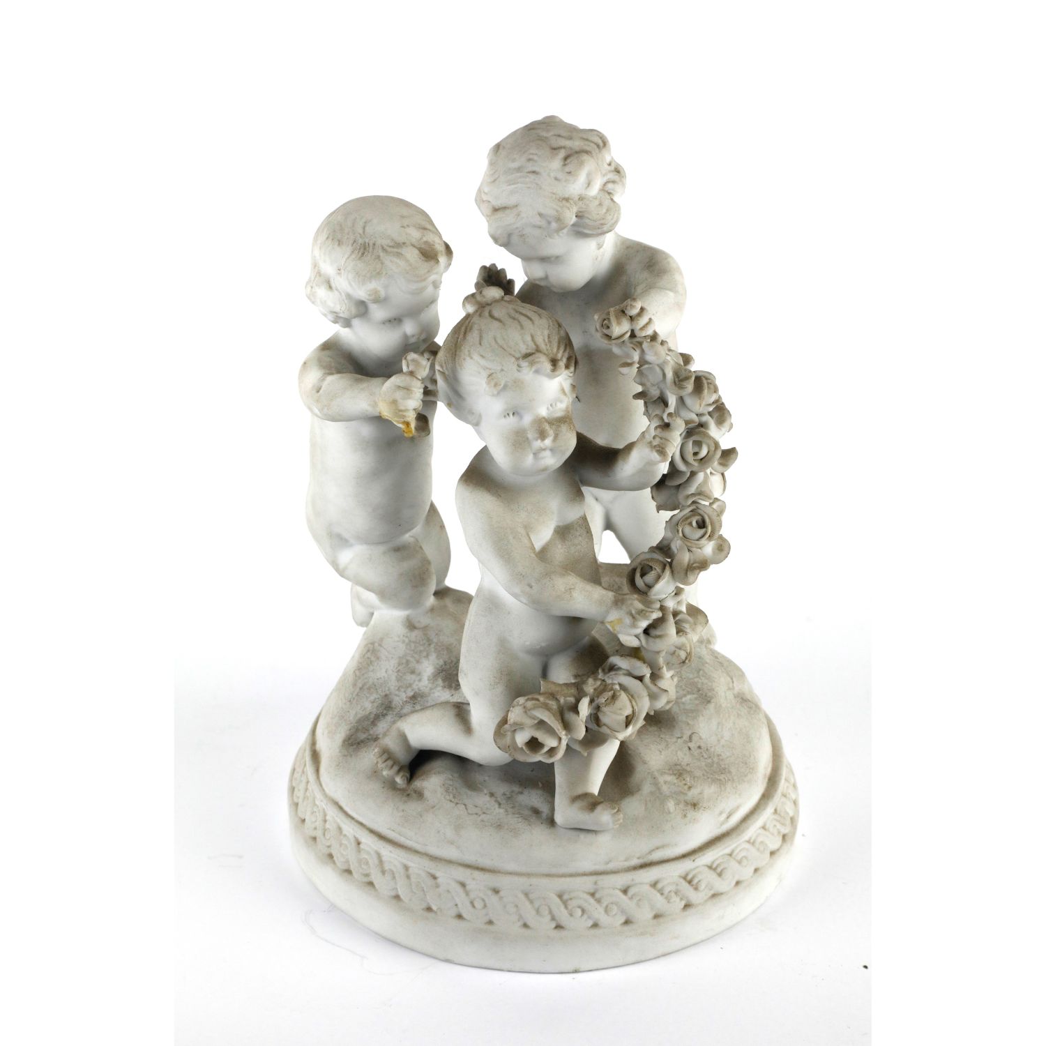 Tre putti gruppo in porcellana bianca metà XX secolo 15 x 10,5