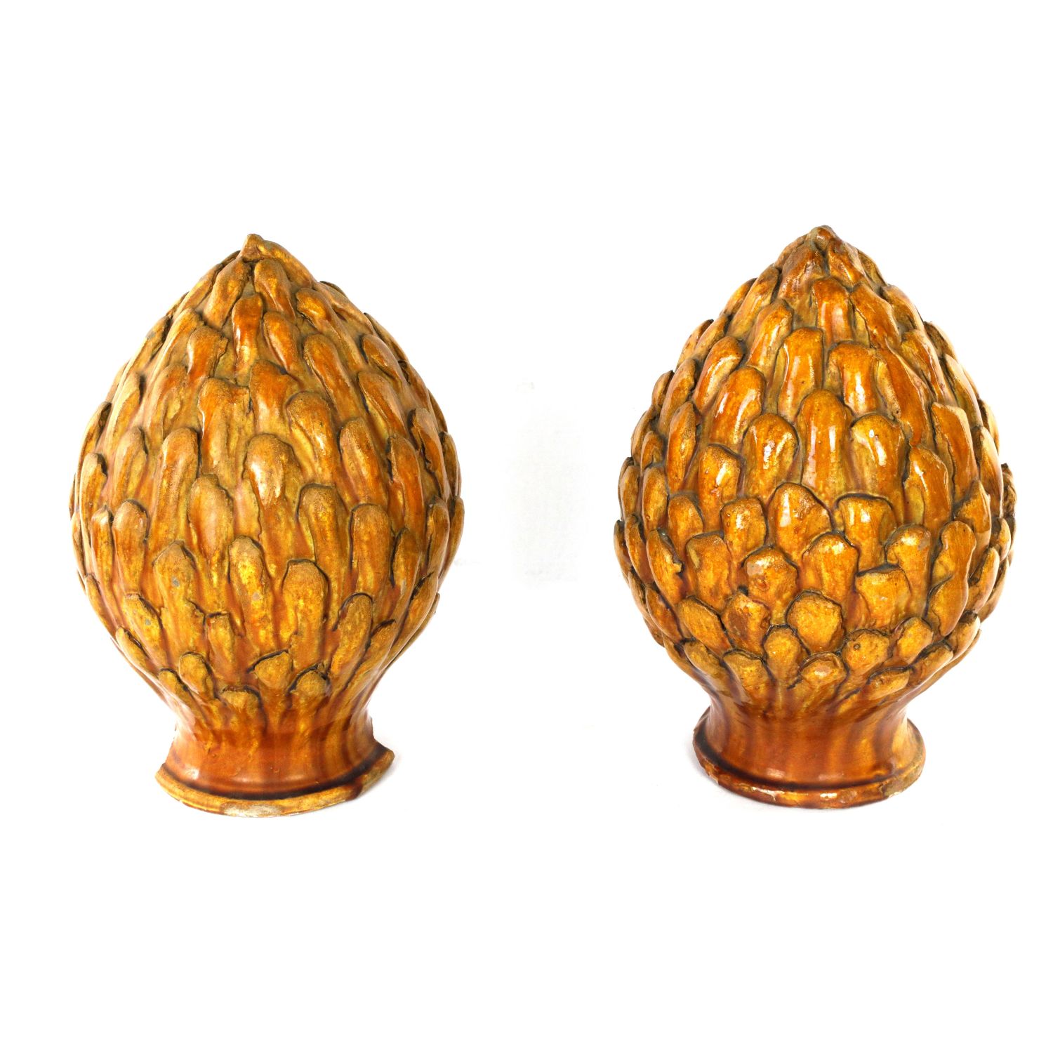Coppia di pigne in ceramica inizi XX secolo 30 x 11,5 cm