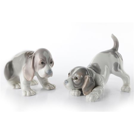 Lotto di 2 cani in porcellana policroma seconda metà XX secolo