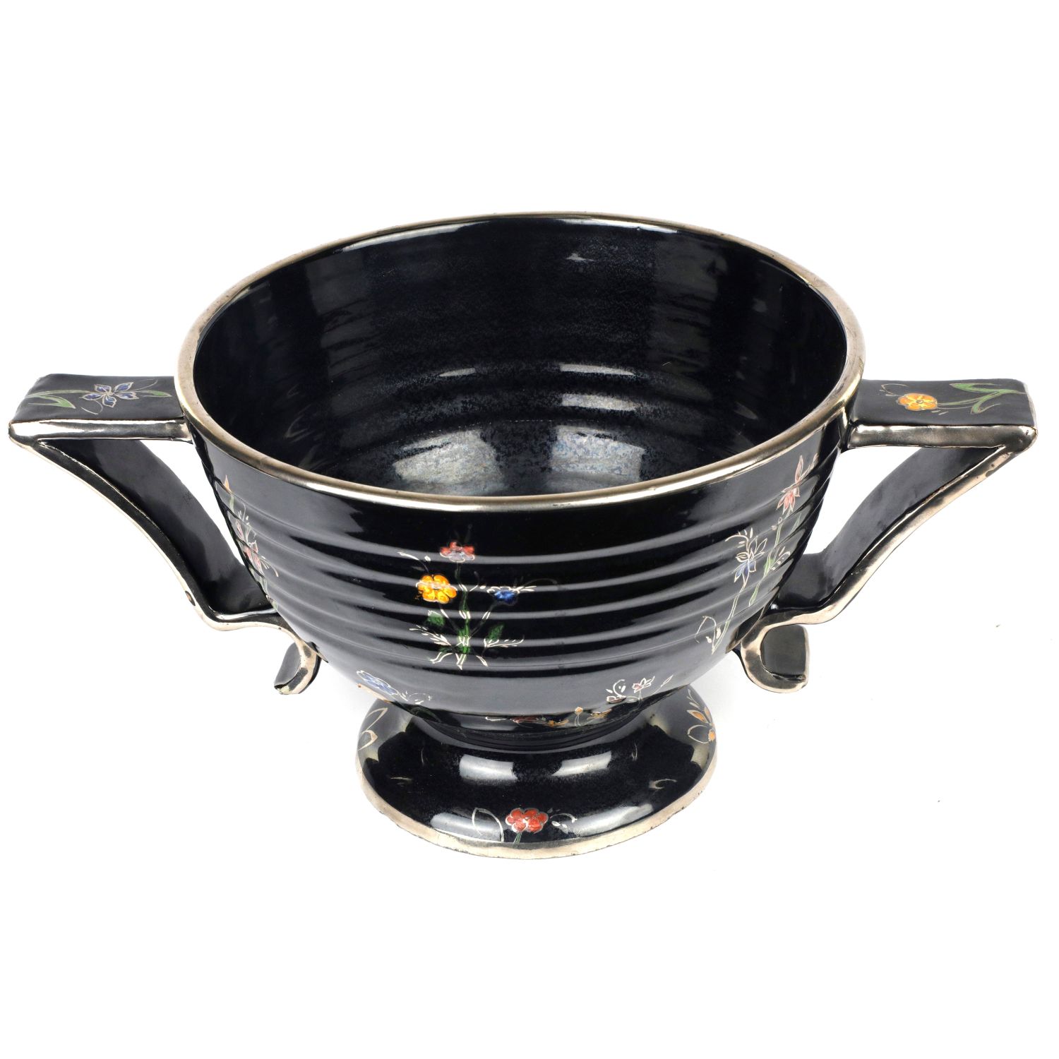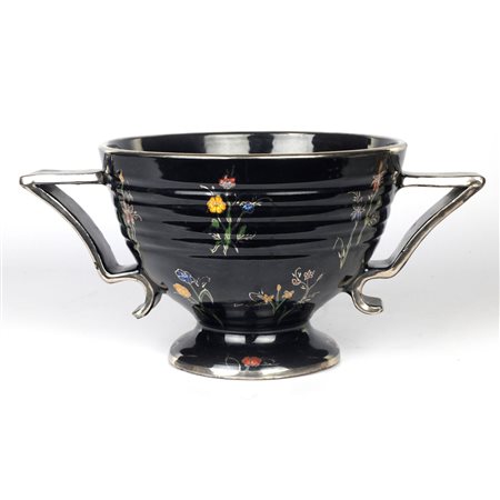 Coppa biansato da centro in ceramica nera 1938/1943 17,5 x 37 x 13,5 cm