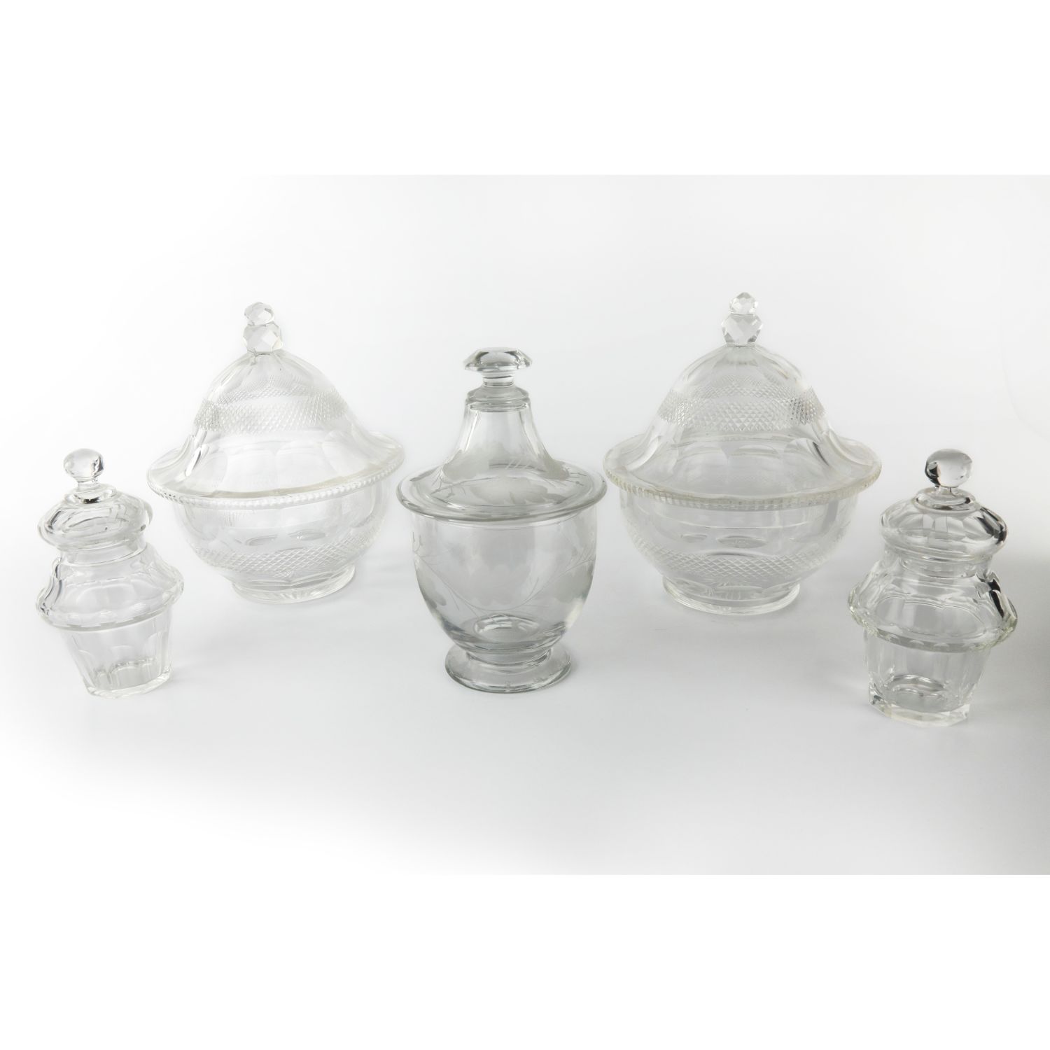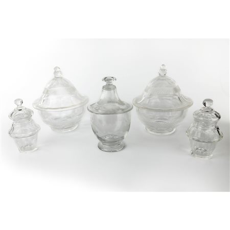 Lotto di 5 contenitori in vetro prima metà XX secolo
