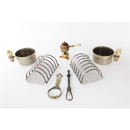 Lotto di 7 oggetti in metallo e argento XX secolo